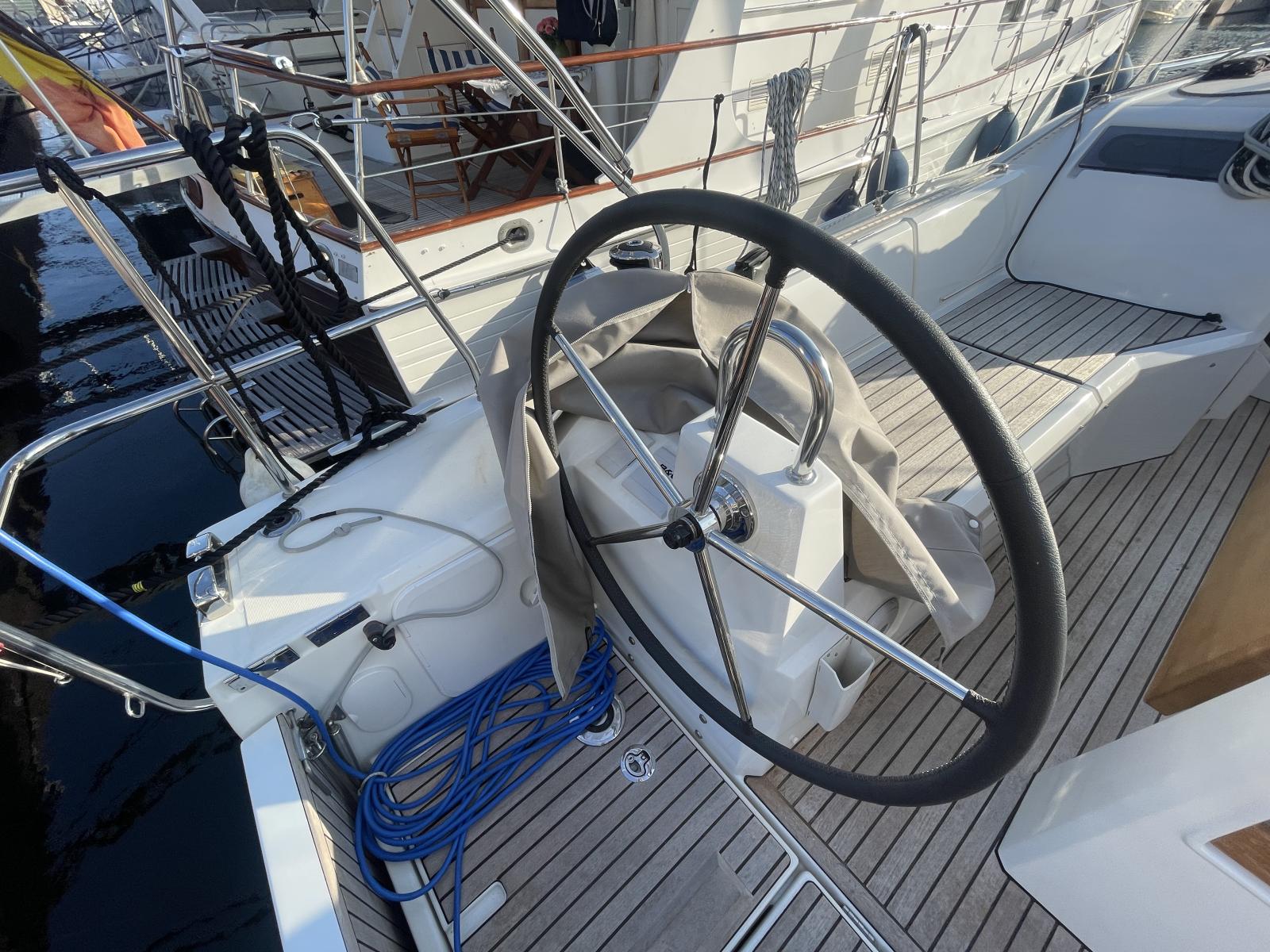Il dispose des options suivantes : Finition confort, coussins extérieurs, table de cockpit luxe avec housse, 4 winchs Harken, électronique Pack offshore B&G, cockpit en teck, et bien plus encore.