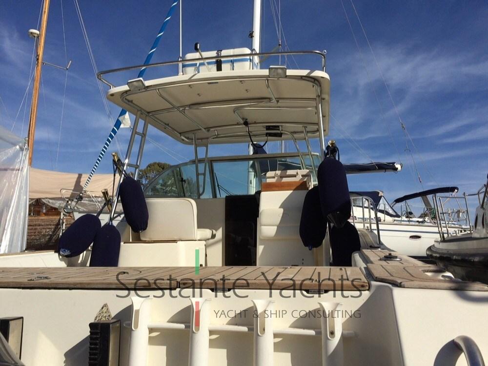 Douche de cockpit, Flaps hydrauliques, Hard top, Éclairage de courtoisie, Pompe de cale automatique, Porte latérale, Connexion eau sous pression à quai, Pont en teck, Winch électrique avant.