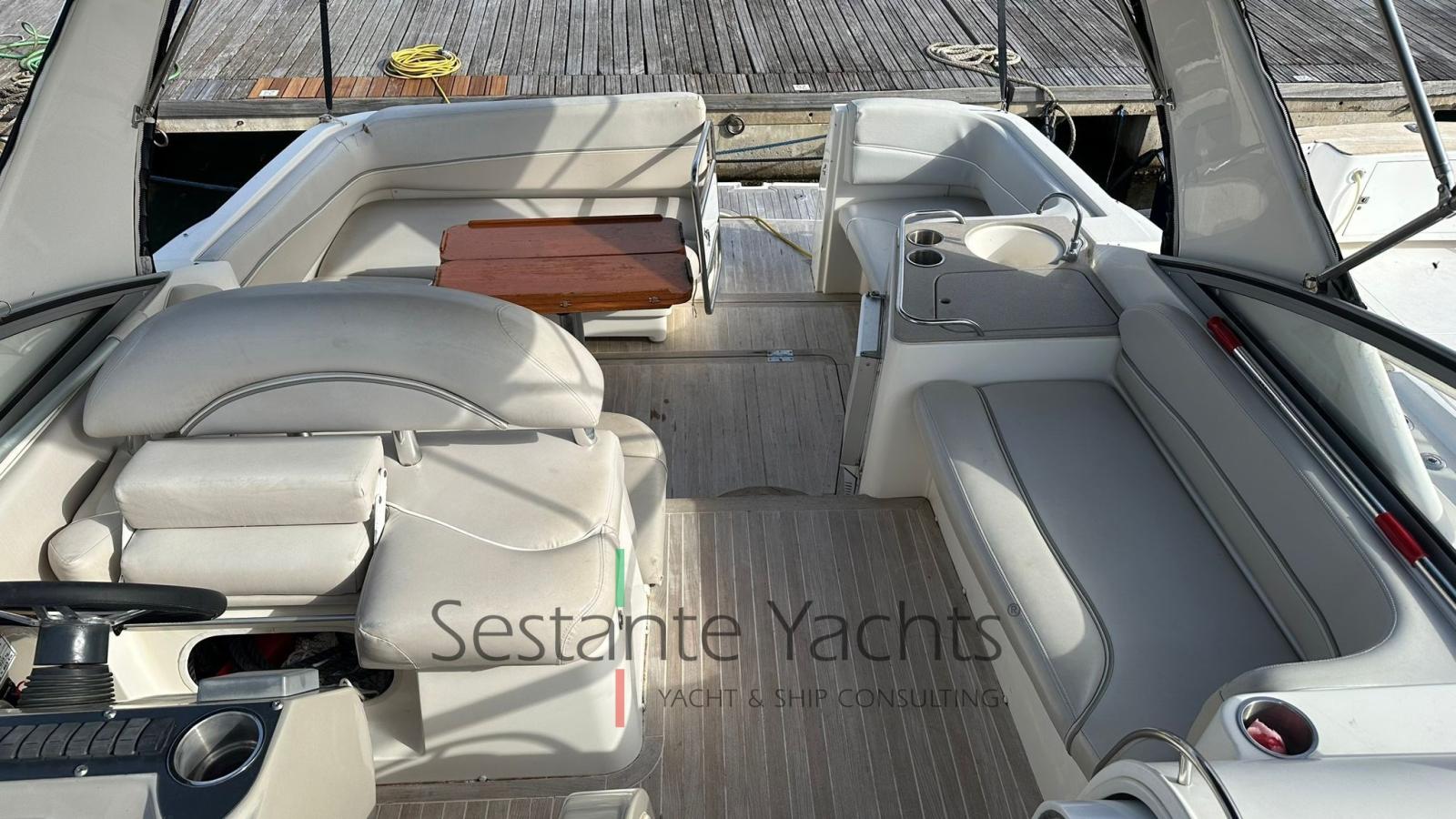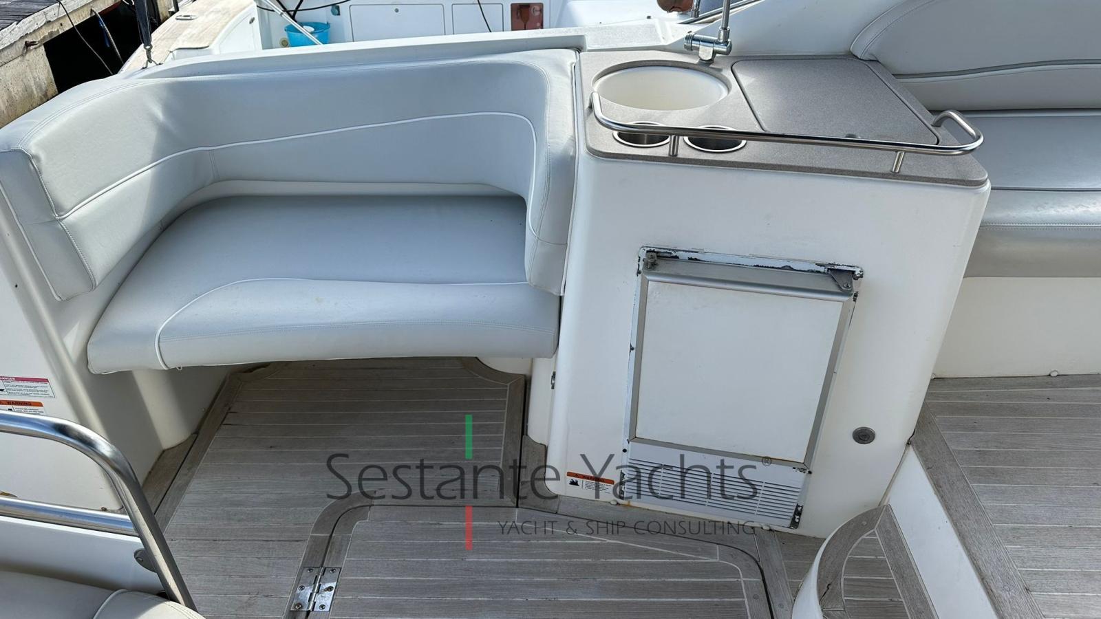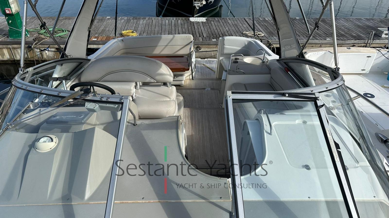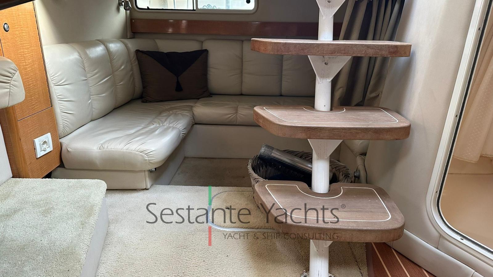 Alarme moteur, Eau sous pression, Batteries (Nuove 2023), Douche de cockpit, Phare de poursuite (a prua), Flaps hydrauliques, Pompe de cale automatique, Cockpit en teck, Prise de quai, Rollbar, Guindeau électrique, Echelle de bain, table de cockpit, Table pliante de salon.