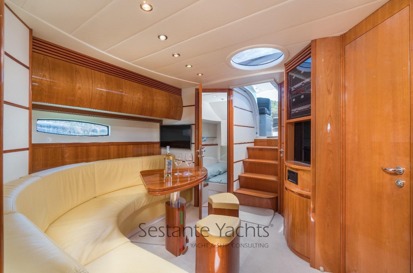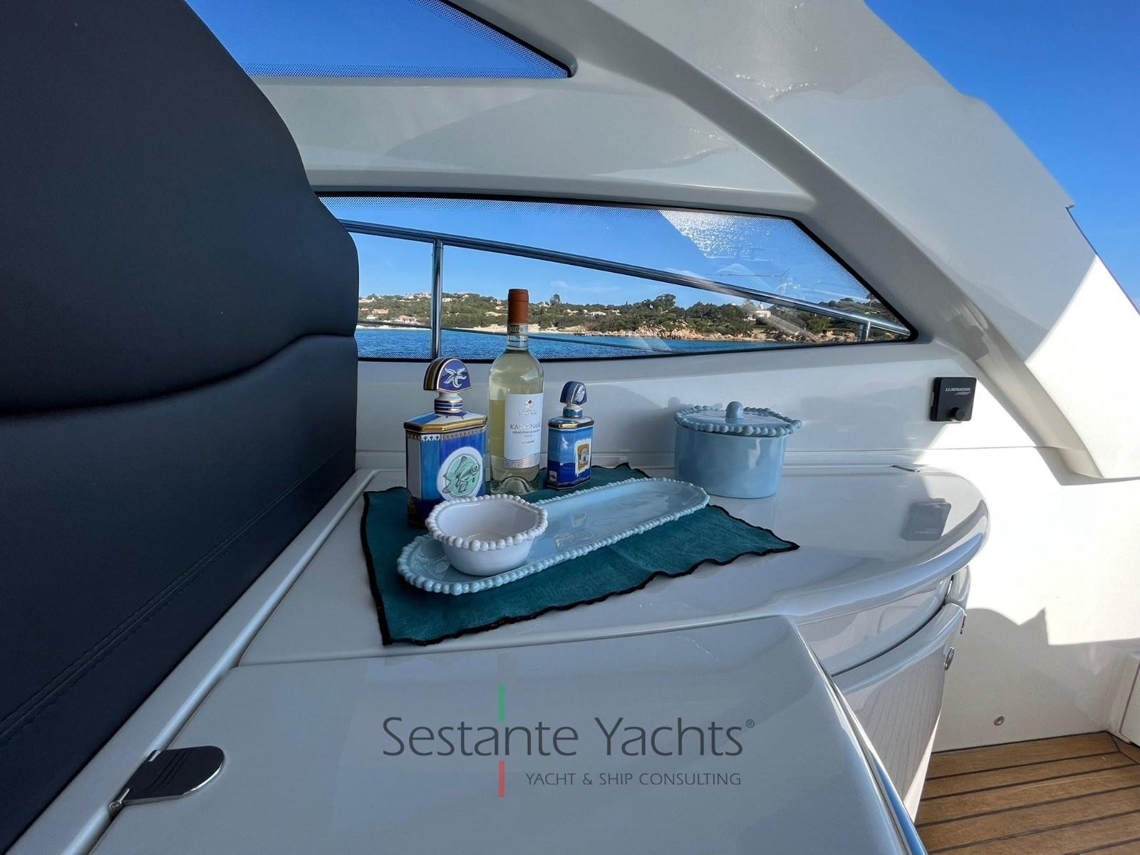 Alarme moteur, Alarme de pompe de cale, Eau sous pression, Douche de cockpit, Phare de poursuite, Flaps électriques, Flaps hydrauliques, Hard top, Extincteur(s) fixe(s), Indicateurs de flaps, Lavage de chaine, Lavabo dans le cockpit, Éclairage de courtoisie, Spots sous-marins, Passerelle, Pompe de cale automatique, Pompe de cale manuelle, Porte latérale, Cockpit en teck, Prise de quai, Connexion eau sous pression à quai, Onduleur, Guindeau électrique, Echelle de bain, Selles pour Annexe, table de cockpit, Table pliante de salon, Annexe, Corne.