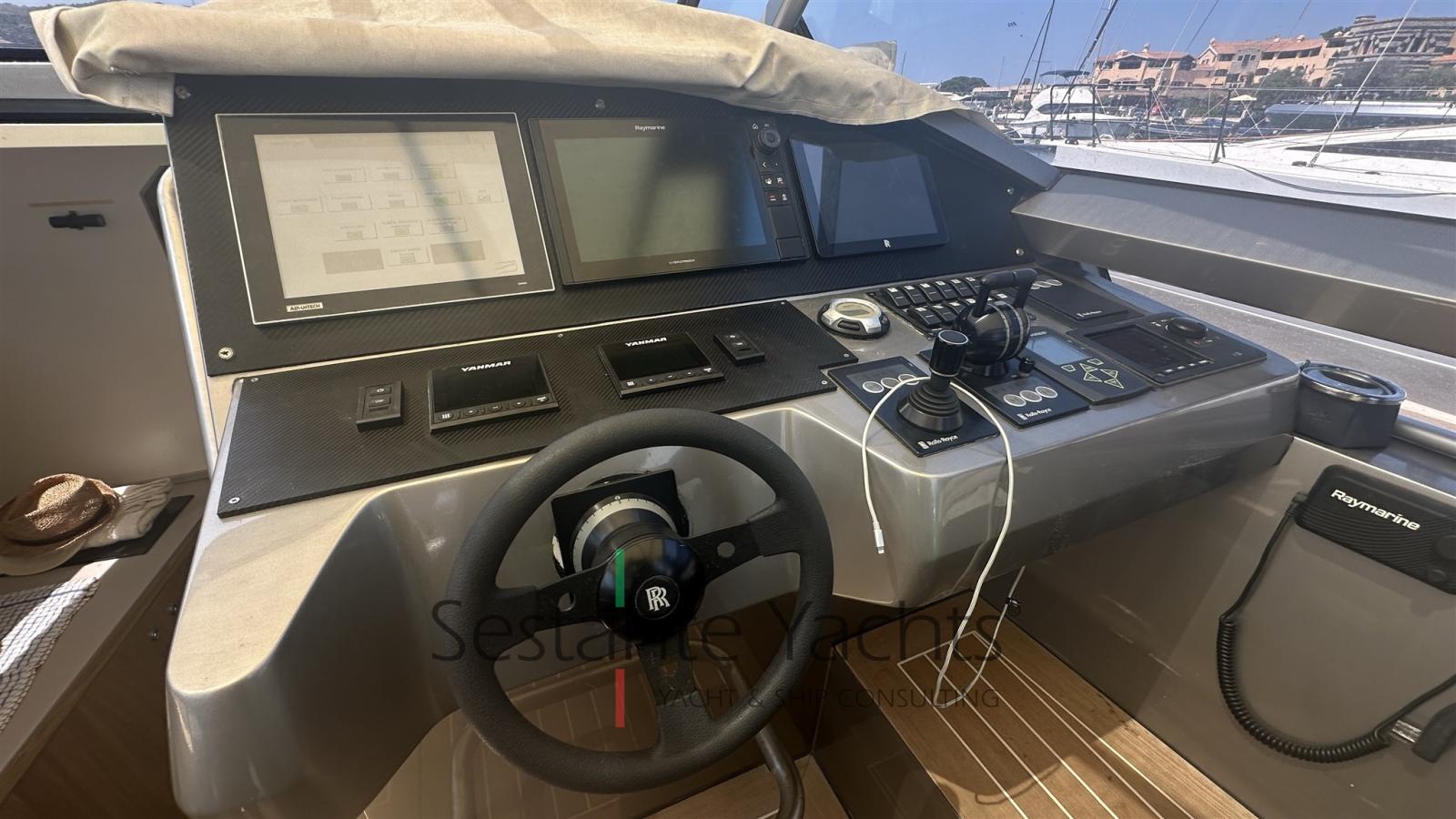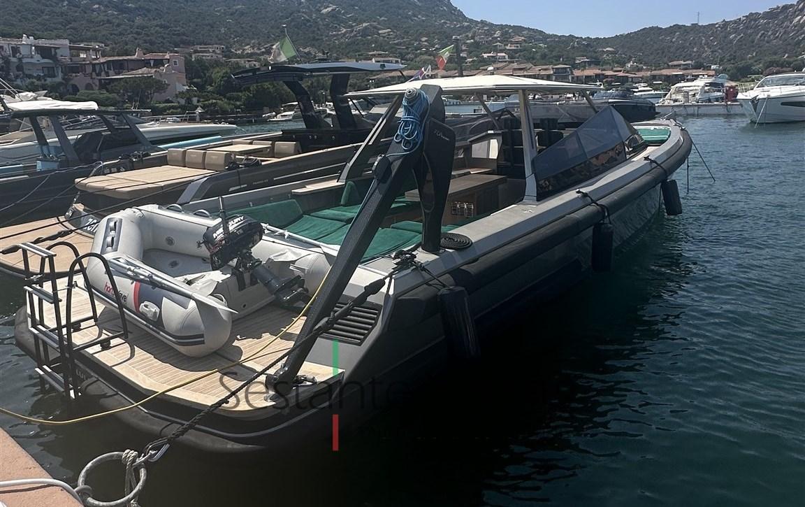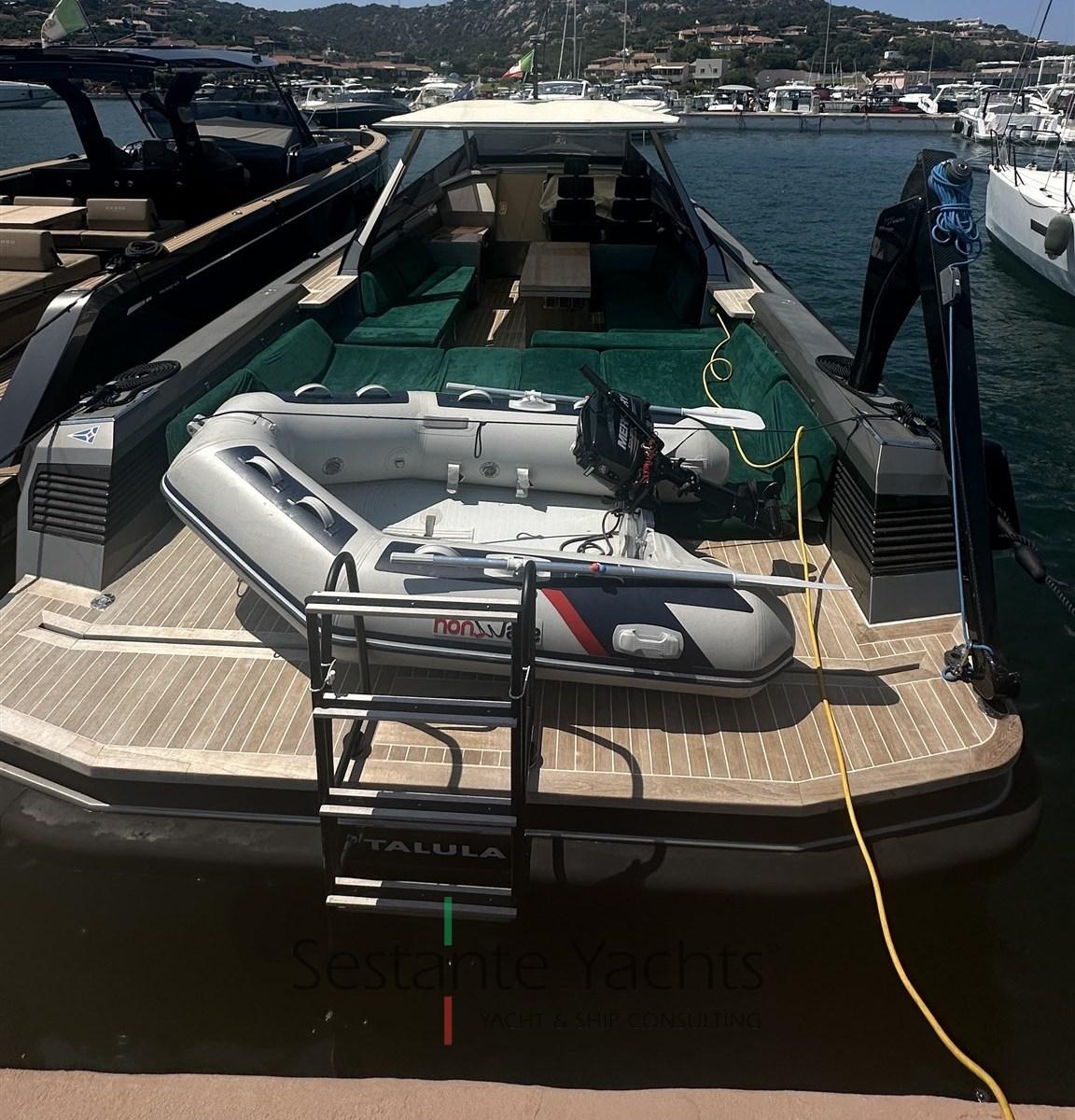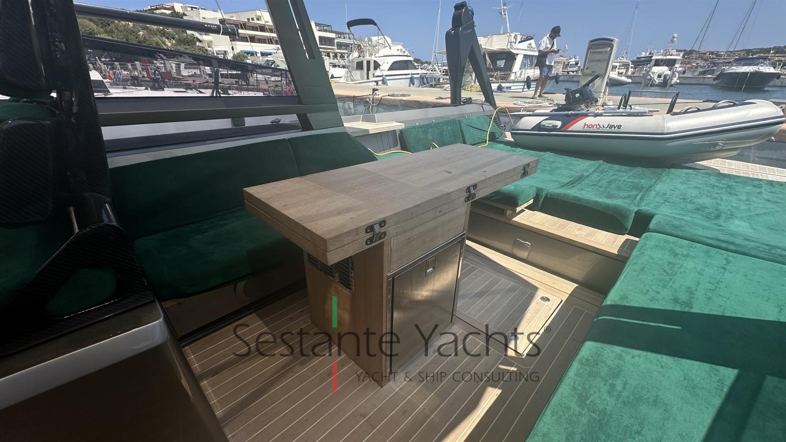 Alarme moteur, Alarme de pompe de cale, Ouverture du compartiment moteur électrique, Auto Dynamic Trim Interceptor, Eau sous pression, Passavant en teck, Couleur spéciale (Gray), Douche de cockpit, Flaps hydrauliques, Bossoirs (In carbonio ammovibile), Extincteur(s) fixe(s), Éclairage de courtoisie, Plateforme arrière, Pompe de cale automatique, Pompe de cale manuelle, Cockpit en teck, Prise de quai, Guindeau électrique, Echelle de bain, table de cockpit, Annexe, Corne, T-Top, Pont en teck.