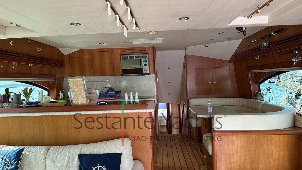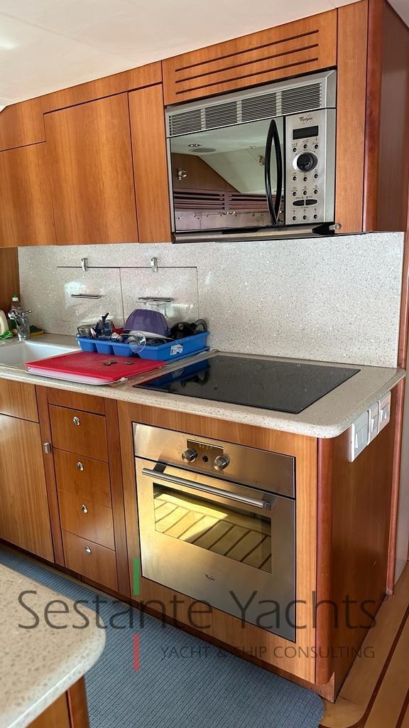 Alarme gaz, Alarme moteur, Alarme de pompe de cale, Eau sous pression, Douche de cockpit, Phares fixes arrière, Flaps hydrauliques, Hard top, Indicateurs de flaps, Lavabo dans le cockpit, Éclairage de courtoisie, Passerelle (manuale), Plateforme arrière, Pompe de cale automatique, Pompe de cale manuelle, Porte latérale, Prise de quai, Connexion eau sous pression à quai, Guindeau électrique, Echelle de bain.