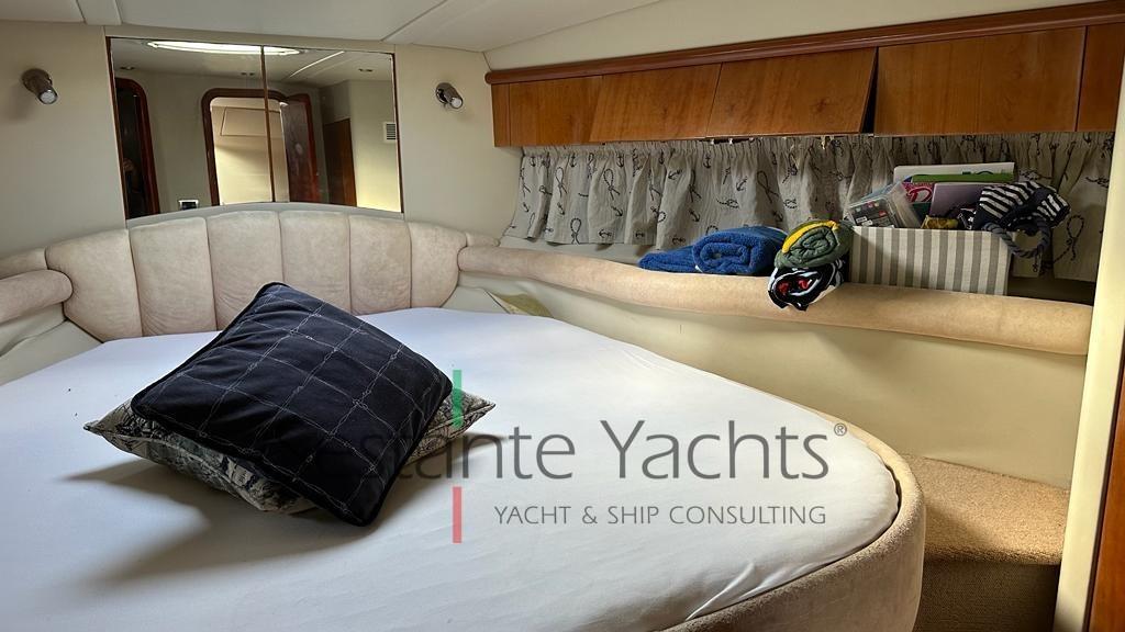 Sunseeker 44 Camargue, 2 cabines confortables et 2 salles de bain, Le bateau est en bon état, au cours de la dernière année la révision totale des moteurs a été effectuée par un atelier agréé Caterpillar, avec la reconstruction de ces culasses, soupapes, injecteurs, échangeurs et tous les travaux nécessaires pour remettre les moteurs dans un état égal à neuf, le tout bidémontrable et certifiable par des factures de plus de 70 000 euros.