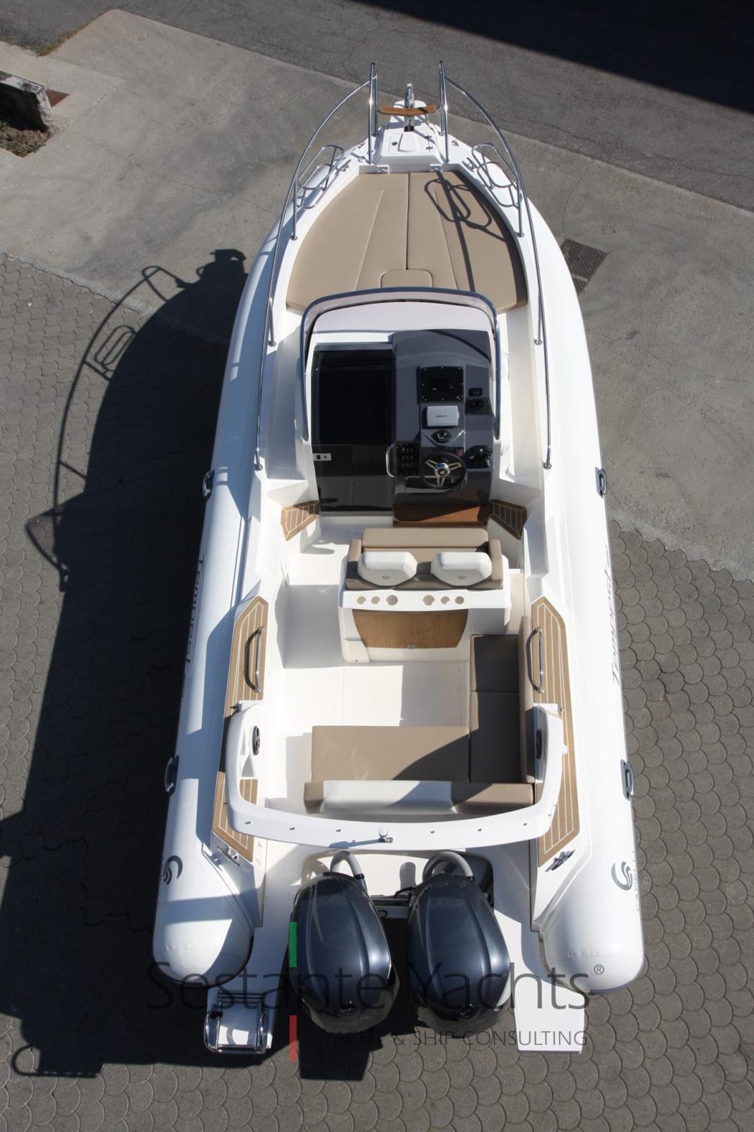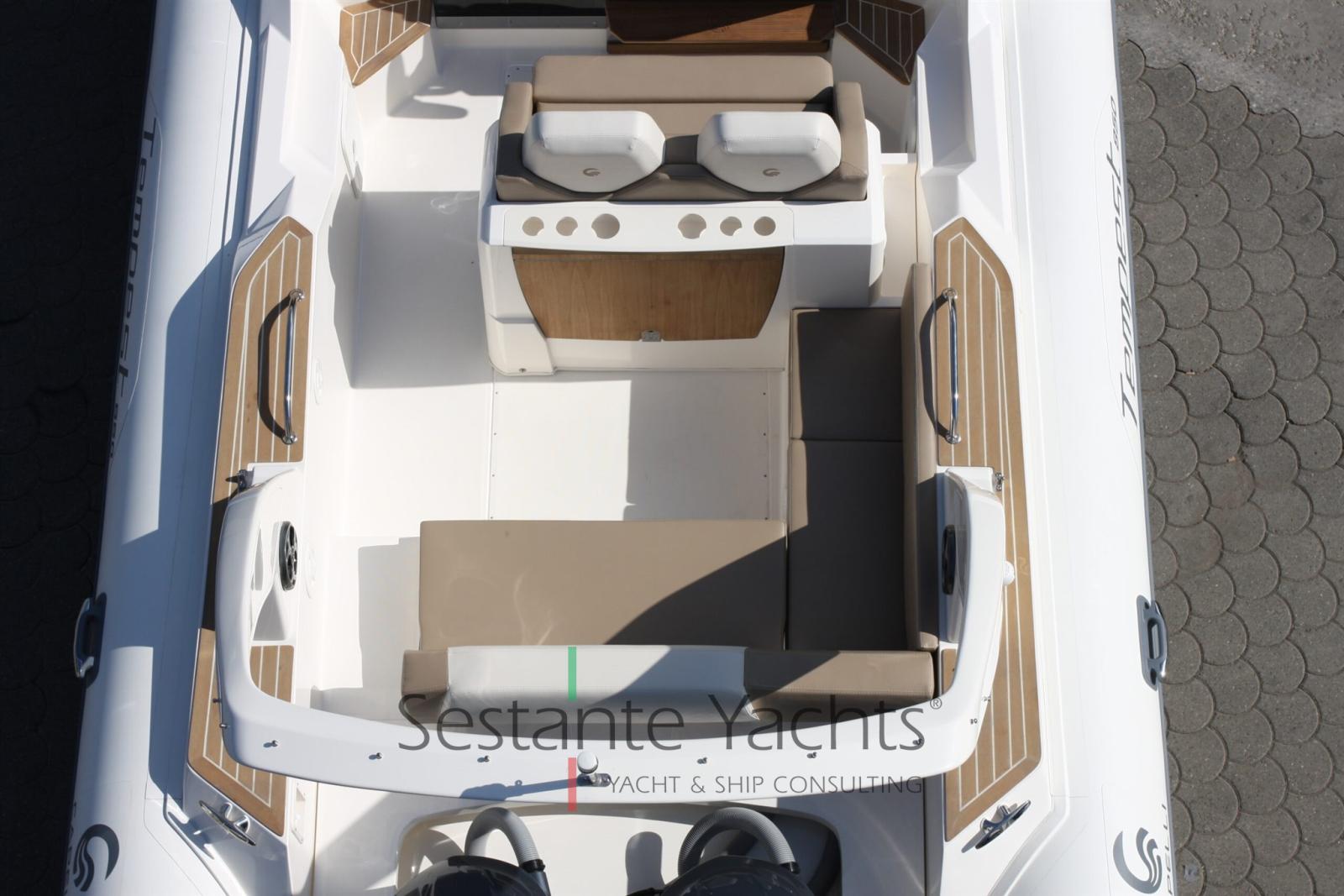 Bateau Capelli Tempest 850 WA, équipé d’un Yamaha F 300 NCB, complet avec les accessoires suivants : compas, coussins d’étrave, douche (70lt environ), réfrigérateur (48lt environ), gonfleur (électrique), kit plate-forme arrière, feux de navigation, rouleau d’étrave en PRV, banc d’entraînement de poteau penché, panneau électrique, pare-brise, pompe de cale (automatique), chaire d’étrave en acier inoxydable, revêtement de plat-bord flexiteek, arceau de sécurité en PRV, échelle, réservoir de carburant (325lt environ), table, système de direction hydraulique, treuil électrique, WC avec réservoir d’eaux noires.
