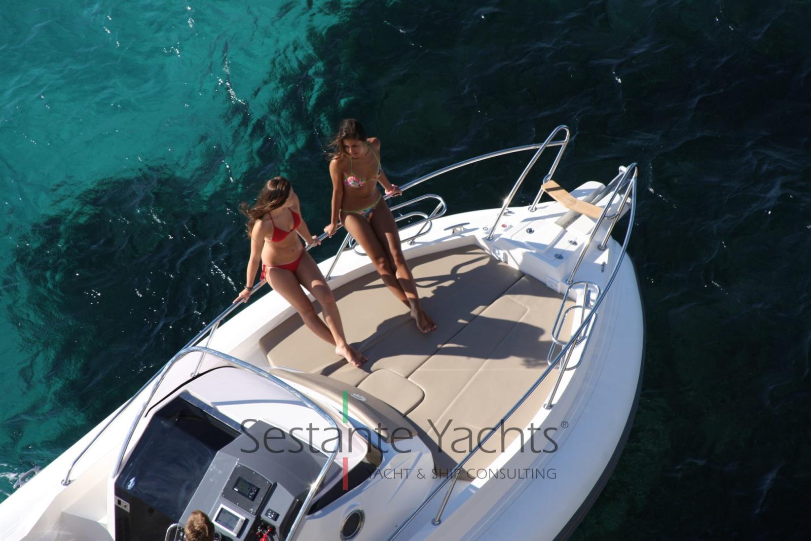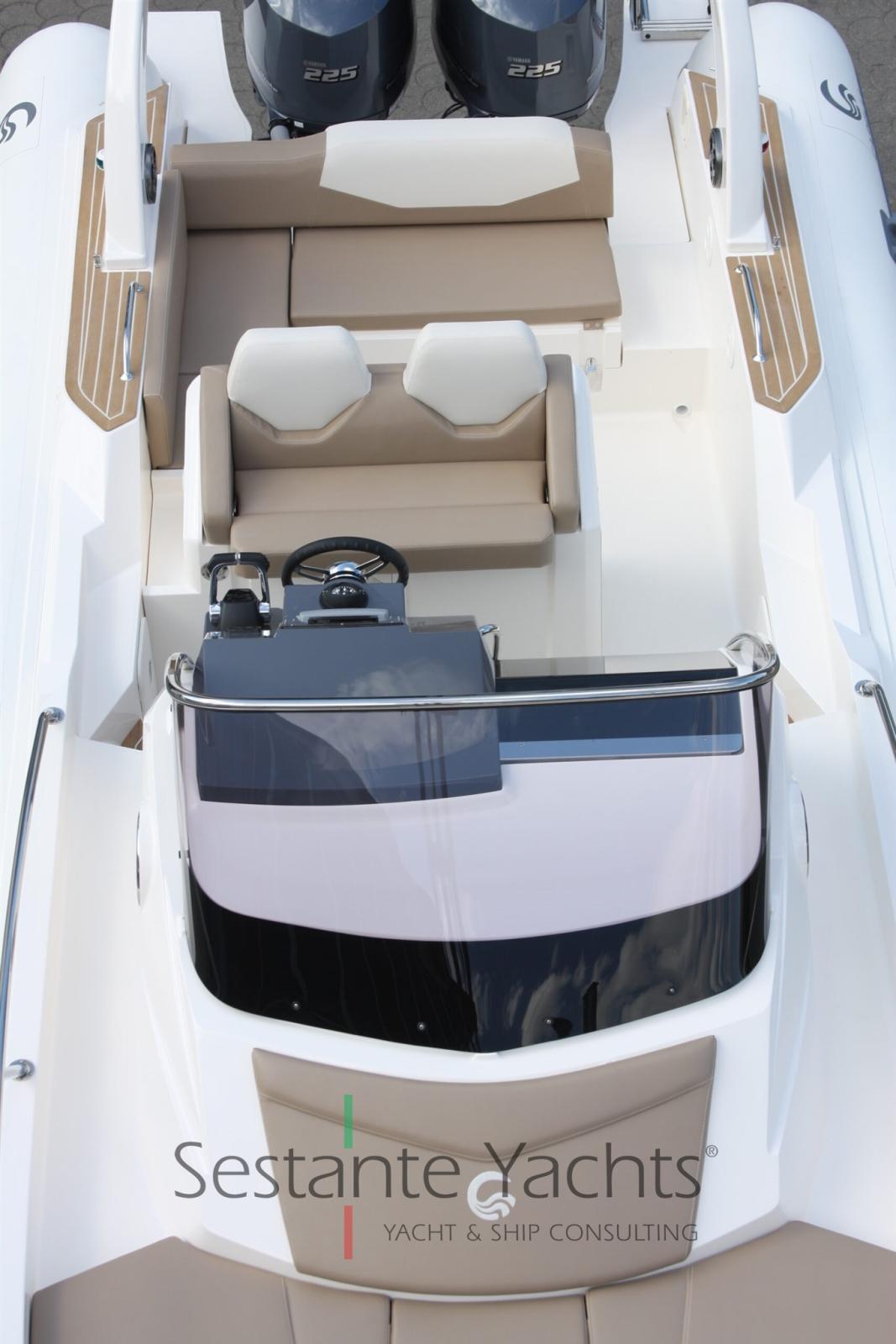 Alarme moteur, Eau sous pression, Douche de cockpit, 2 Plateforme arrière (laterali a poppa), Rollbar, Guindeau électrique, Table.