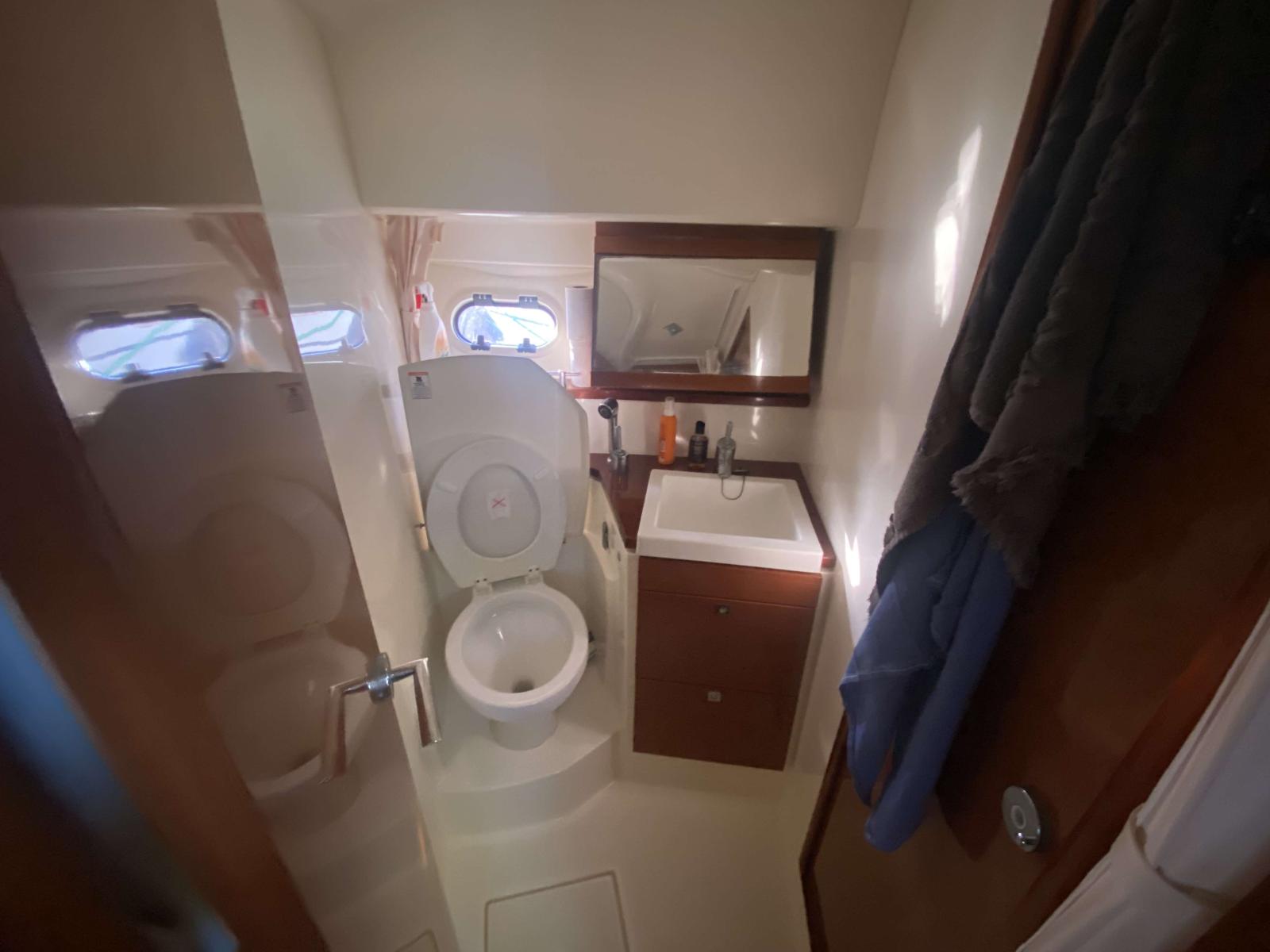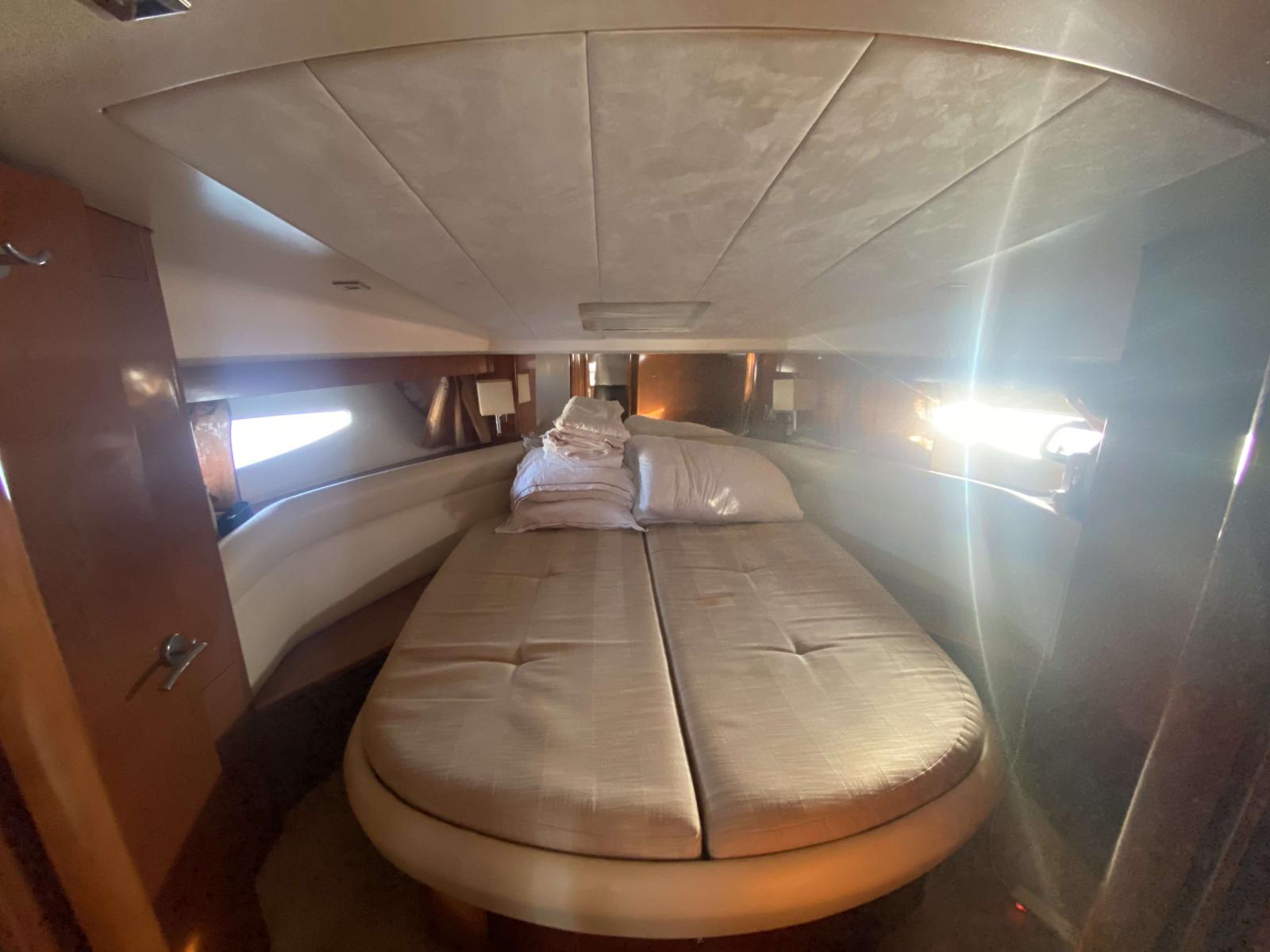 Motorisé par des Cummins Diesel de 380 chevaux en ligne d’arbre (surement la meilleure configuration pour ce modèle) avec seulement 800 heures, 20 nœuds en croisière et 29 en vitesse maxi,