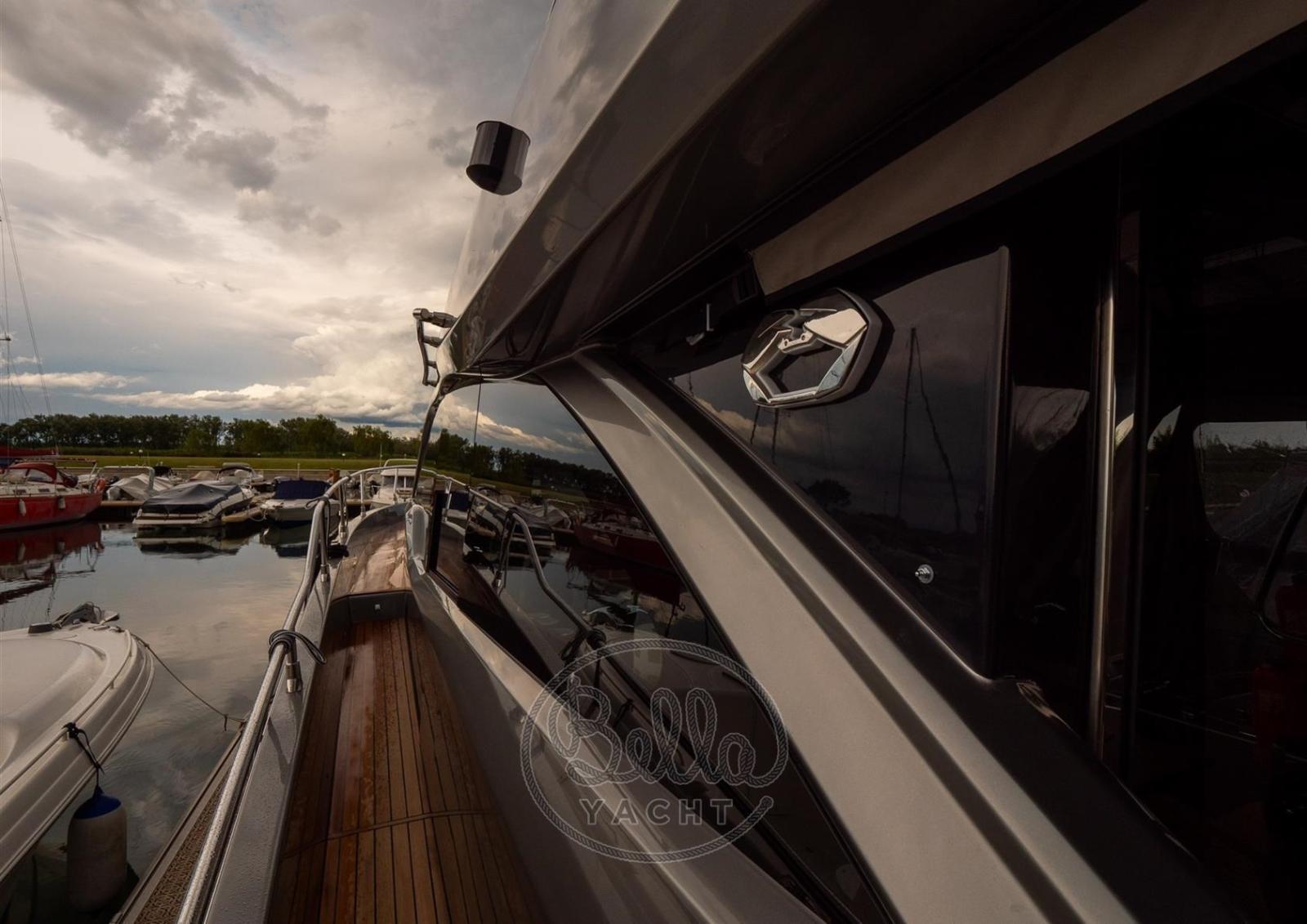 Alarme gaz, Alarme moteur, Alarme de pompe de cale, Ancre (Dynamic positioning Volvo), Trim hydraulique (Coordinated Turn control), 6 Batteries (charger), Passavant en teck, Chargeur de batterie (40Ah), Douche de cockpit, Phare de poursuite, Flaps électriques (trim tabs interceptor), Hard top, Indicateurs de flaps, Spots sous-marins, Passerelle (hydraulic), Plateforme arrière (Hydraulic stern platform), Cockpit en teck, Connexion eau sous pression à quai, Guindeau électrique, Echelle de bain, Annexe, Corne, Pont en teck.