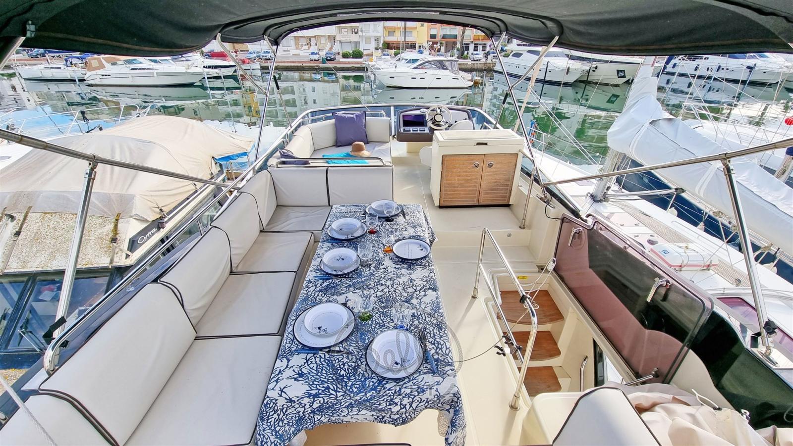 Douche de cockpit, Flaps électriques, Indicateurs de flaps, Plateforme arrière (HYDRAULIC), Cockpit en teck, Prise de quai, Guindeau électrique.
