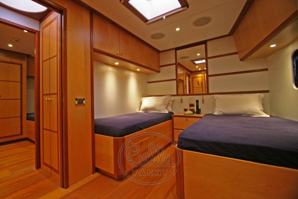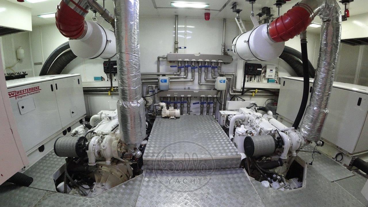 Propulsé par deux moteurs Cummins Inc., Marina Vela glisse sans effort sur les eaux, atteignant une vitesse maximale de 12,5 nœuds. Avec une capacité de carburant de 4 700 litres, le yacht offre des voyages prolongés sans avoir besoin de ravitaillements fréquents.