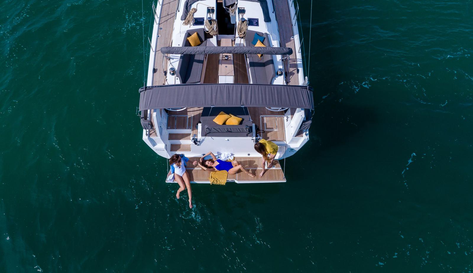 Le Dufour 470 intègre tous les éléments essentiels à notre marque : cockpit ouvert et circulation sécurisée, manœuvres facilement accessibles ou encore une grande plateforme de baignade. Tout y est facilité pour que le propriétaire s’y sente à l’aise, la zone technique est également pensée pour un accès facilité. Vous avez finalement une plancha avec un évier à l'arrière de votre voilier afin de profiter de vos apéritifs à l'extérieur.
