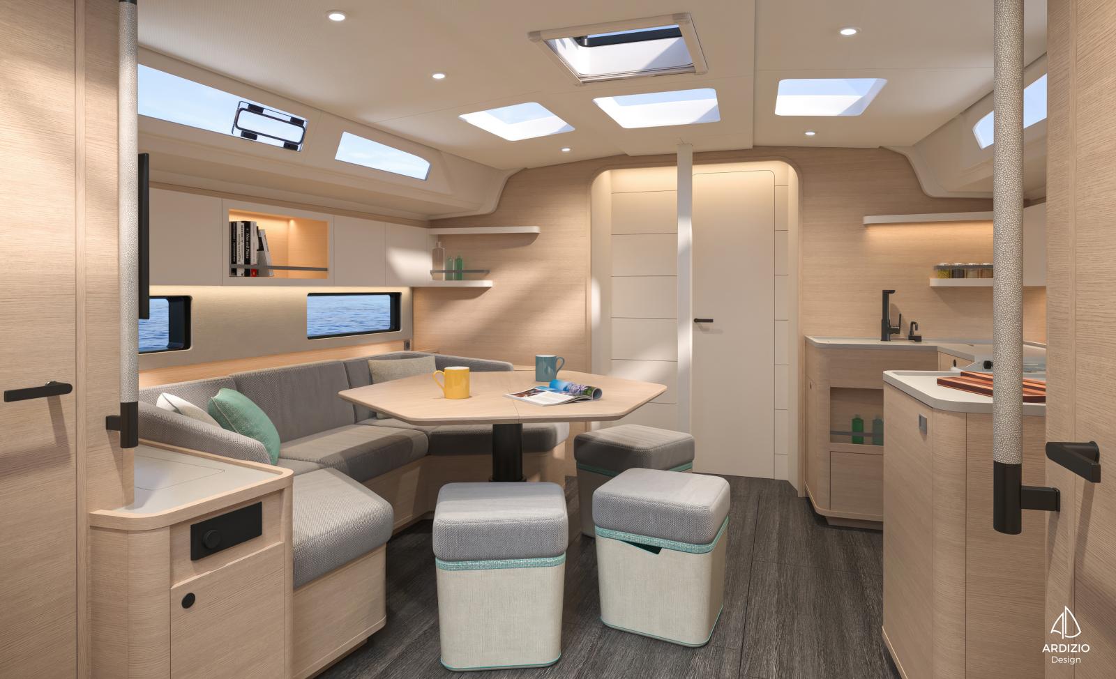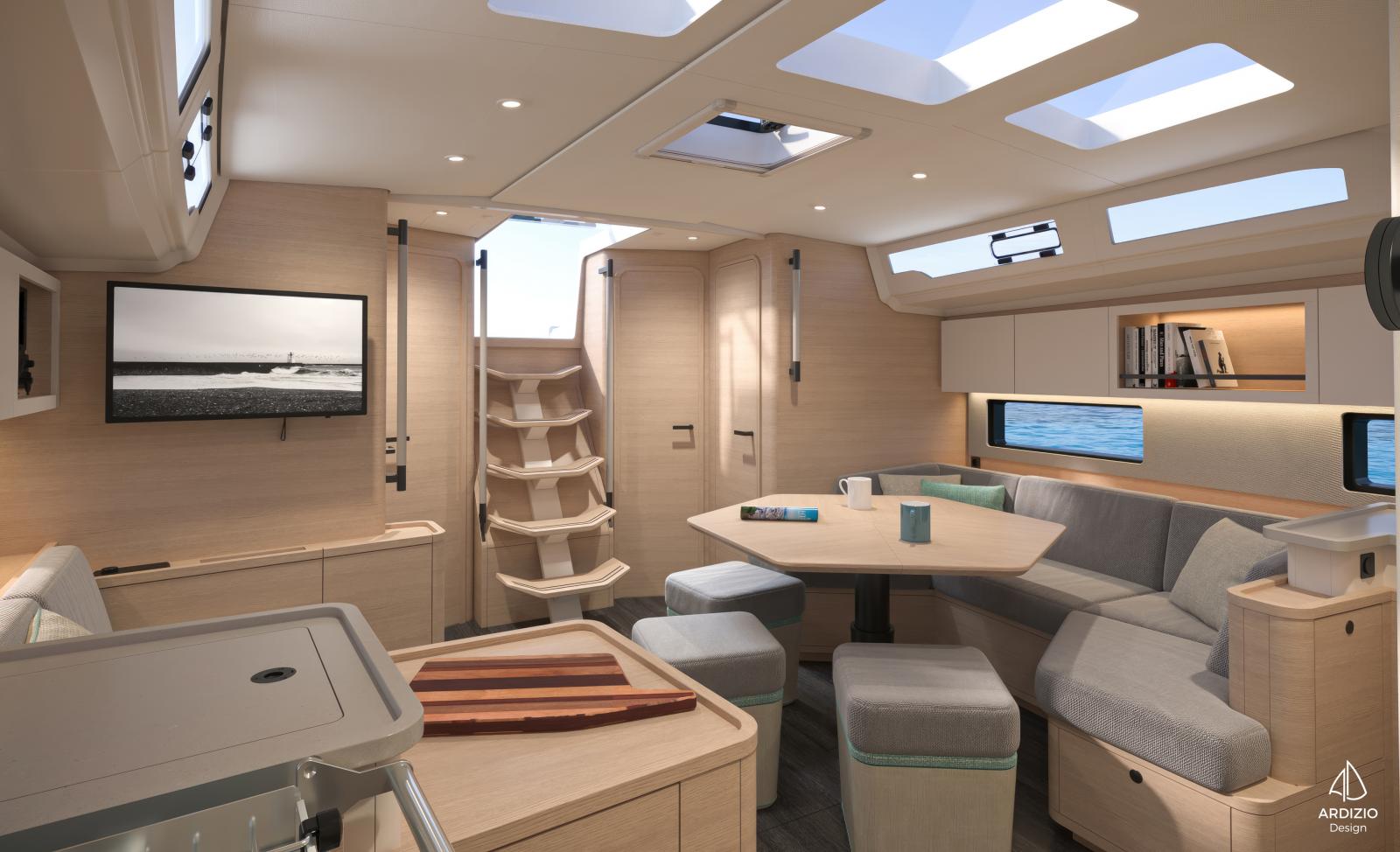Conçu en collaboration avec Felci Yachts Design, le Dufour 44 présente un design de coque élancé, assurant une navigation précise et réactive. L’agrément à la barre séduira les futurs propriétaires et les plaisanciers en croisière. À l’intérieur, l’agilité du voilier ne compromet pas le confort. L’espace luxueusement aménagé par Luca Ardizio offre une détente inégalée en mer, des cabines élégantes à des espaces de vie ouverts et lumineux.