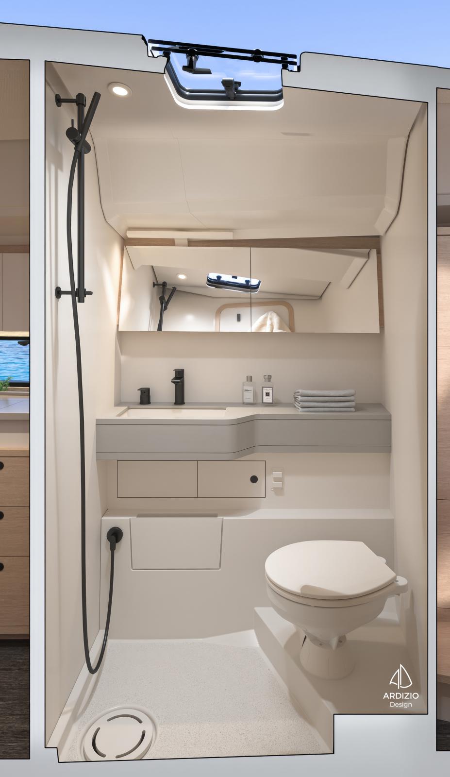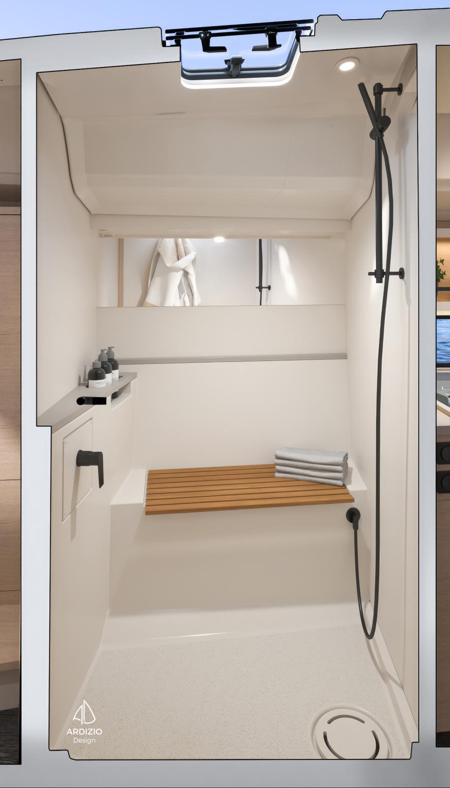 La largeur généreuse de la coque permet de profiter d’un cockpit spacieux et d’une plateforme de baignade facilement accessible, une caractéristique novatrice chez Dufour. Le voilier offre un carré sur toute la largeur du bateau avec une table hexagonale innovante, offrant une capacité d’assise pour 10 personnes. La cabine propriétaire à l’avant dépasse les attentes en termes de confort, avec son Island Bed et sa salle d’eau indépendante.