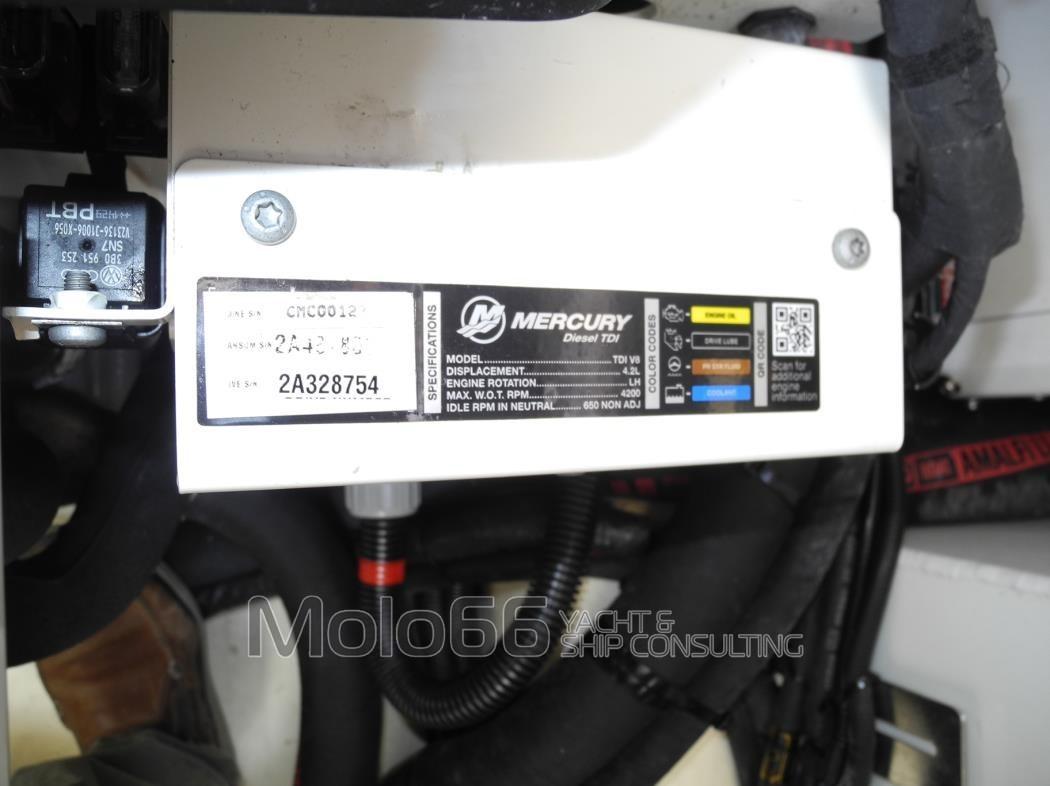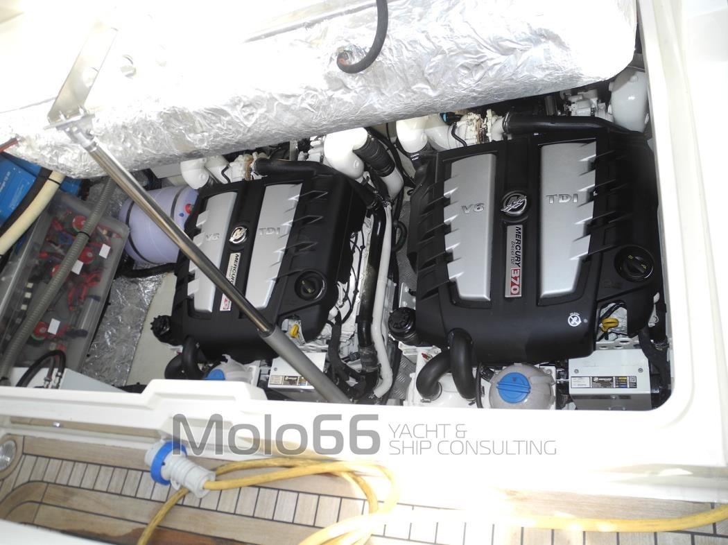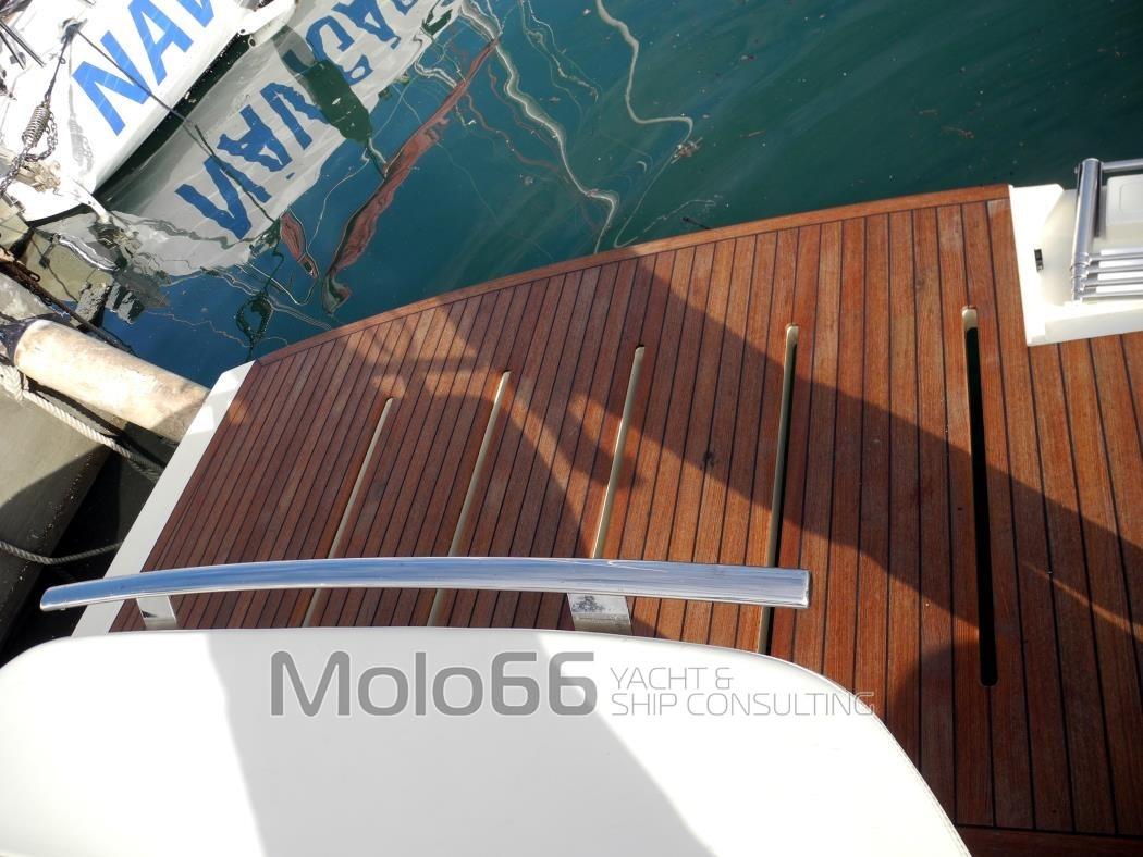 Bateau en bon état, entièrement en option, revêtement en teck, cubia avec rouleau en acier inoxydable, treuil d’ancre électrique, ancre en acier inoxydable avec chaîne, balcon en acier inoxydable, taquets en acier inoxydable, tête de bande en teck, bain de soleil avant complet avec coussins avec sangles de fixation, douche de cockpit, pare-brise avec profil en acier inoxydable, armoire de cockpit complète avec évier et grill, feux de navigation, lumières profondes au sol, lumières de courtoisie LED, réfrigérateur, table extensible en teck, housse de table, canapé arrière complet avec coussins, housse de canapé, système audio, canapé-repas convertible, table dînette, réfrigérateur, plate-forme submersible, balcon latéral ouvrant, climatisation, lumières sous-marines, toit rigide en carbone