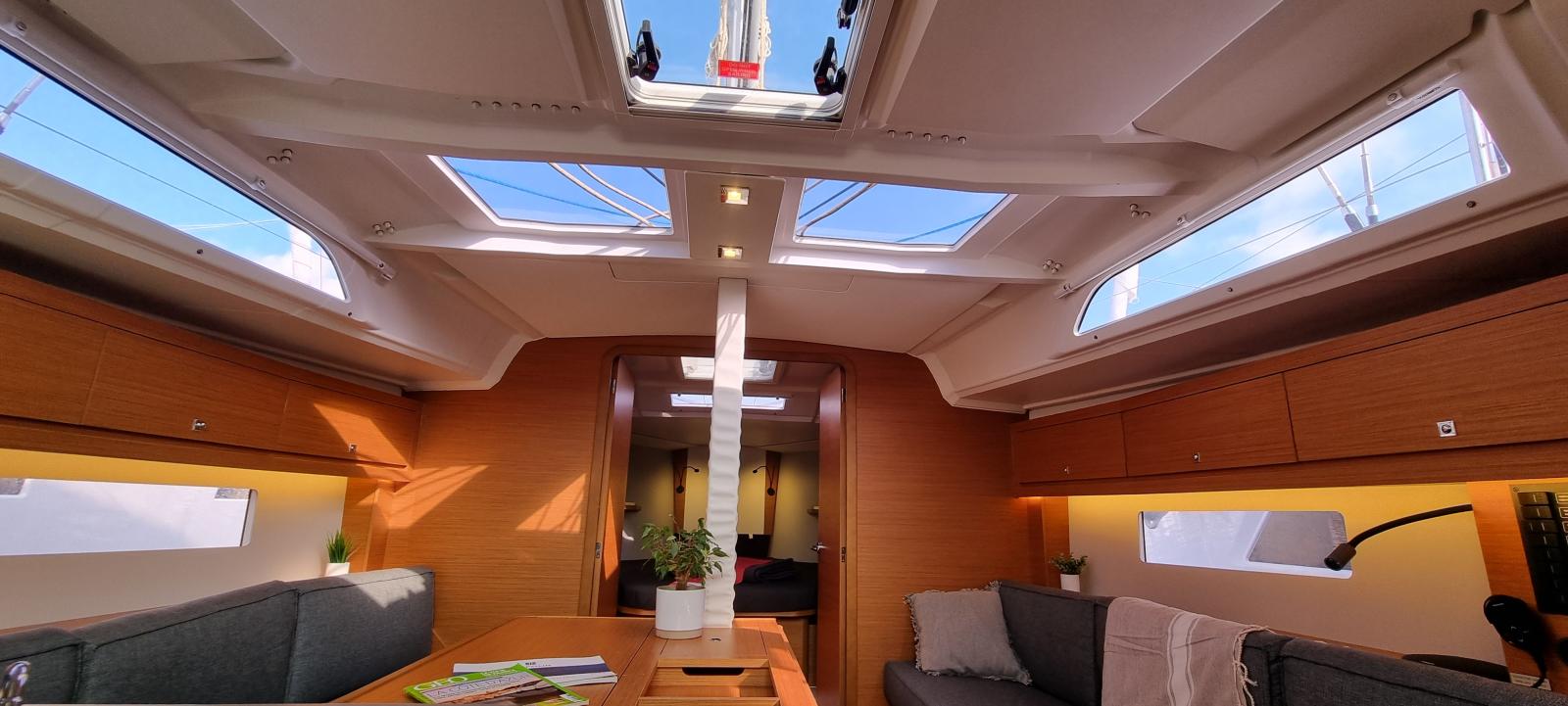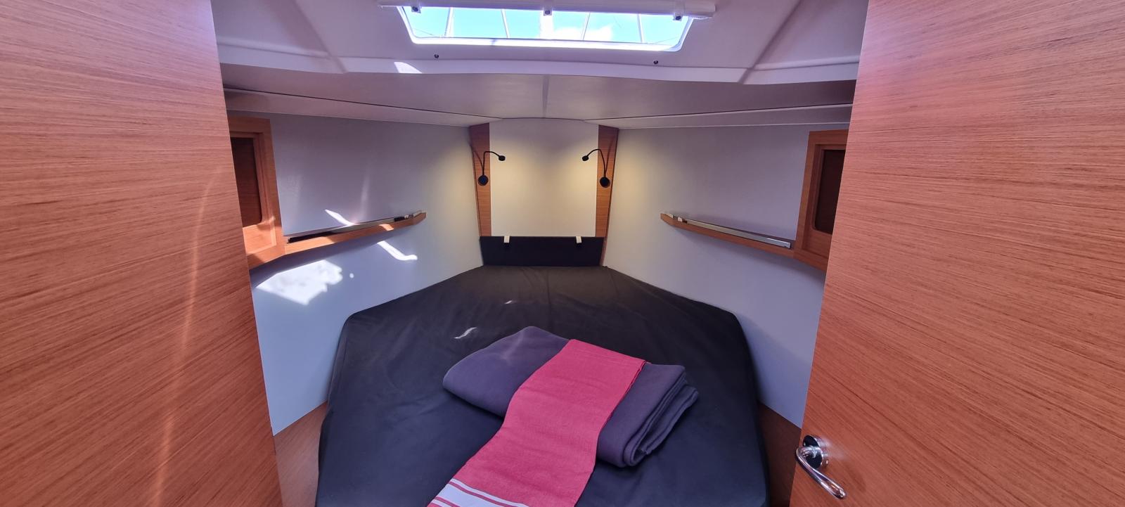 Equipements électriques : Guindeau électrique, propulseur d'étrave, éclairage de cockpit LED intégrée au bimini, chauffe eau, prises USB carré et cabines, circuit 220V.