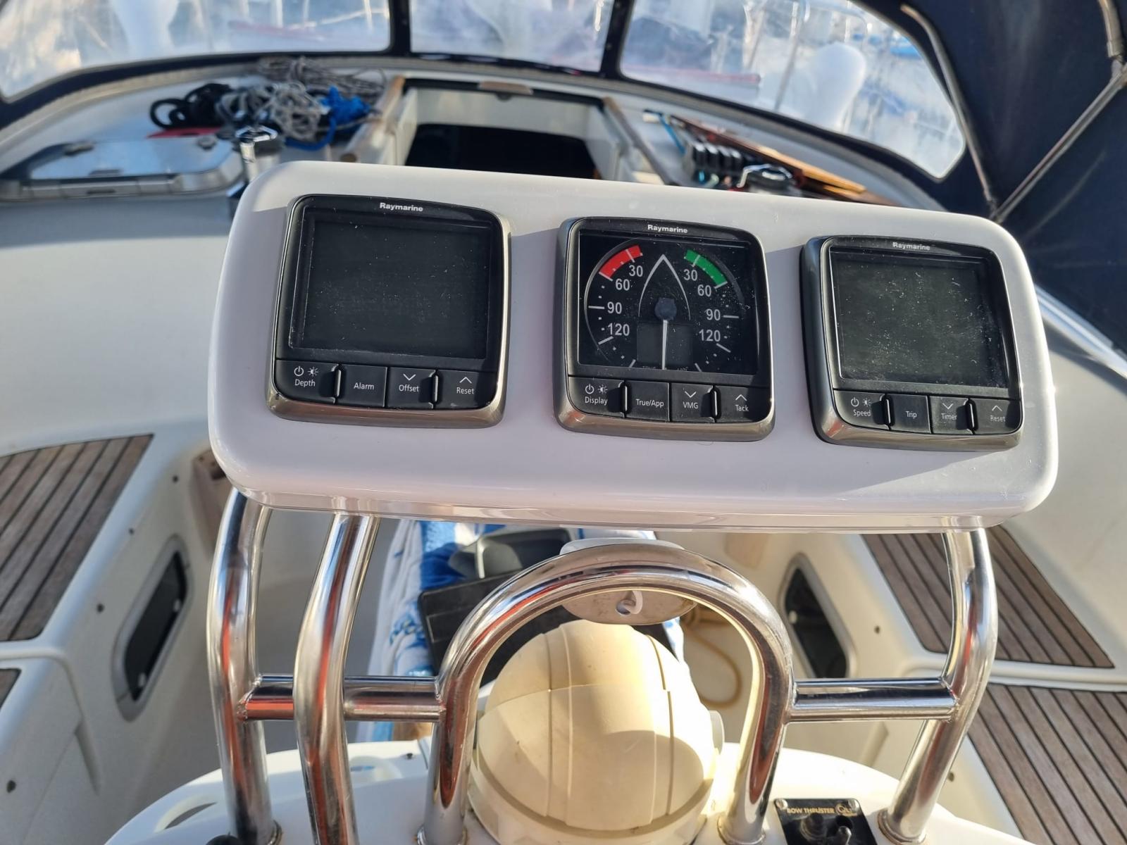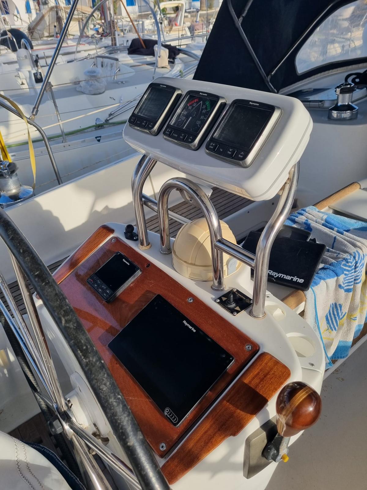 Tous les appareils en haut du mât ont été renouvelés, le câblage et les appareils électroniques ont été remplacés par de nouveaux appareils Raymarine et un réseau Nmea 2000 ainsi que la radio VHF et le système AIS, le plotter et tous les autres indicateurs de vitesse et de vent etc...