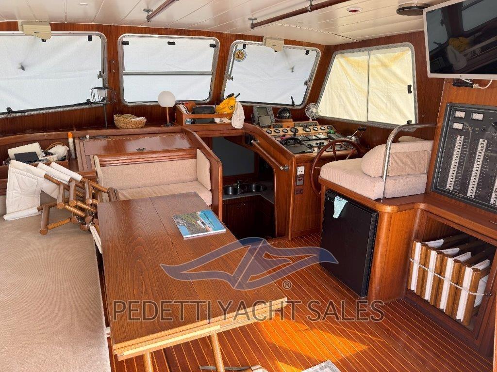 Menorquin 150 de 1998 avec des moteurs Volvo Penta de 320 ch, des échappements réinstallés, échangeurs, de nouvelles turbines installées en 2023 et tous les systèmes de filtration neufs. Les moteurs ne sont que de 800 AC. heures moteur et le générateur AC 44 heures moteur. Le cockpit en teck ainsi que toute la passerelle en teck, la partie caoutchouc du pont n’est pas très usée. Tous les coussins intérieurs et extérieurs ont été refaits en 2023. Le bateau est équipé d’un générateur de 10 kW et d’une climatisation avec deux moteurs pour une diffusion correcte.