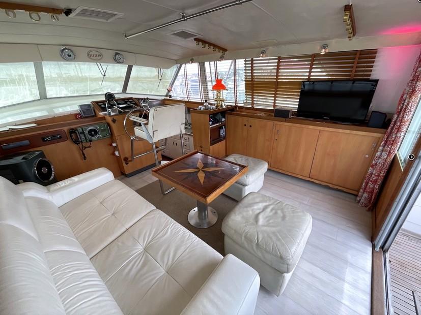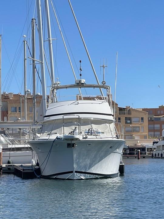 Bertram 46.6, vedette de 14M de type fishing. Le chantier Bertram est mondialement connu pour la qualité de construction de ses bateaux. La réputation de tenue de mer en navigation en fait des unités recherchées. Ce modèle a été refité et il n'a eu que 3 propriétaires. Les espaces intérieurs et extérieurs sont importants et offrent un confort indéniable. Ce bateau est équipé de 2 Moteurs diesel dont la consommation à 15 noeuds est de 40L/H. La taxe de francisation est de 1022€/an. Il dispose également d'une place de port. Visite possible tous les jours sur rendez - vous. N'hésitez pas à nous contacter pour plus d'informations.