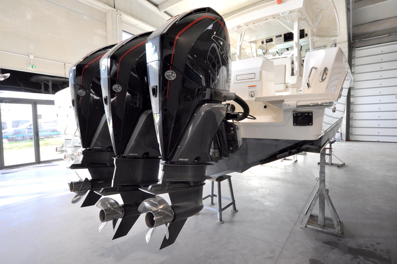 Une occasion rare d’acquérir un Boston Whaler 380 Outrage 2022 dans un état proche du neuf, alliant performance exceptionnelle, confort haut de gamme et fiabilité légendaire de la marque. Propulsé par trois Mercury Verado Racing V8 de 450 cv (soit 1 350 cv au total), il offre des accélérations impressionnantes et une vitesse de pointe pouvant atteindre 55 nœuds, tout en conservant une grande stabilité.