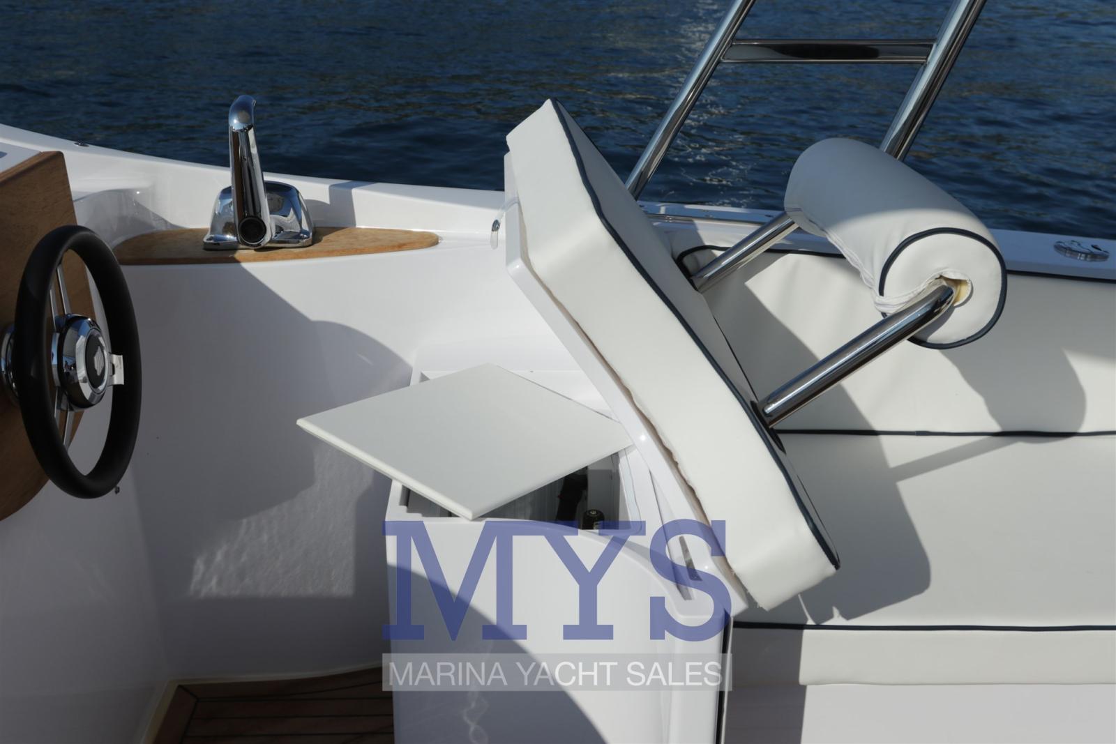 Feux de navigation - Pompe de cale automatique - Pompe de cale manuelle - Réservoirs de carburant en acier inoxydable de 400 l avec sonde de carburant - Réservoir d’eau douce de 120 litres. - Klaxon électrique - Volets électriques - Interrupteur de batterie - 2 extincteurs - 2 batteries de service - 1 batterie moteur.