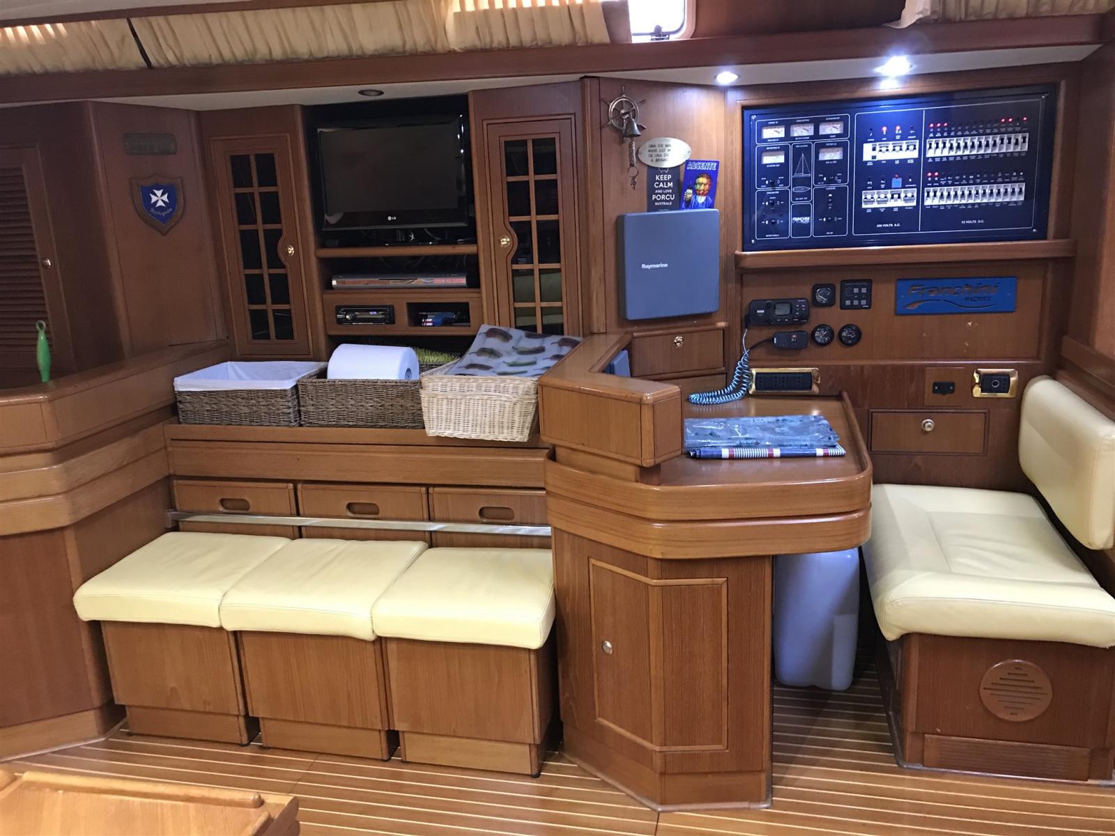 Alarme moteur, Eau sous pression, 8 Batteries, Passavant en teck, Douche de cockpit, Propulseur d'étrave (SIDEPOWER), Passerelle, Plateforme arrière, 3 Pompe de cale automatique, 2 Pompe de cale électrique, 2 Pompe de cale manuelle, Cockpit en teck, Prise de quai, Guindeau électrique, Gréement monotoron, Echelle de bain, 5 Winch (ANTAL), 3 Winch électrique (ANTAL).