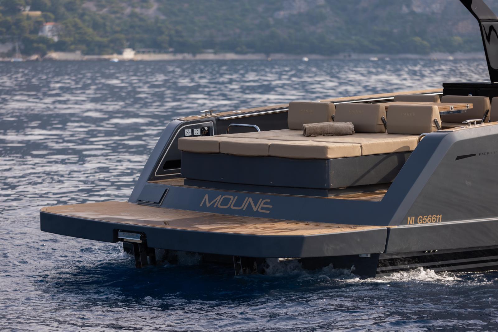Embarquez à bord de MOUNE, un somptueux Pardo 43, alliance parfaite entre design italien, performance et confort. Ce day boat iconique offre le cadre idéal pour une journée privée en mer sur la Côte d’Azur, dans une ambiance raffinée et décontractée.