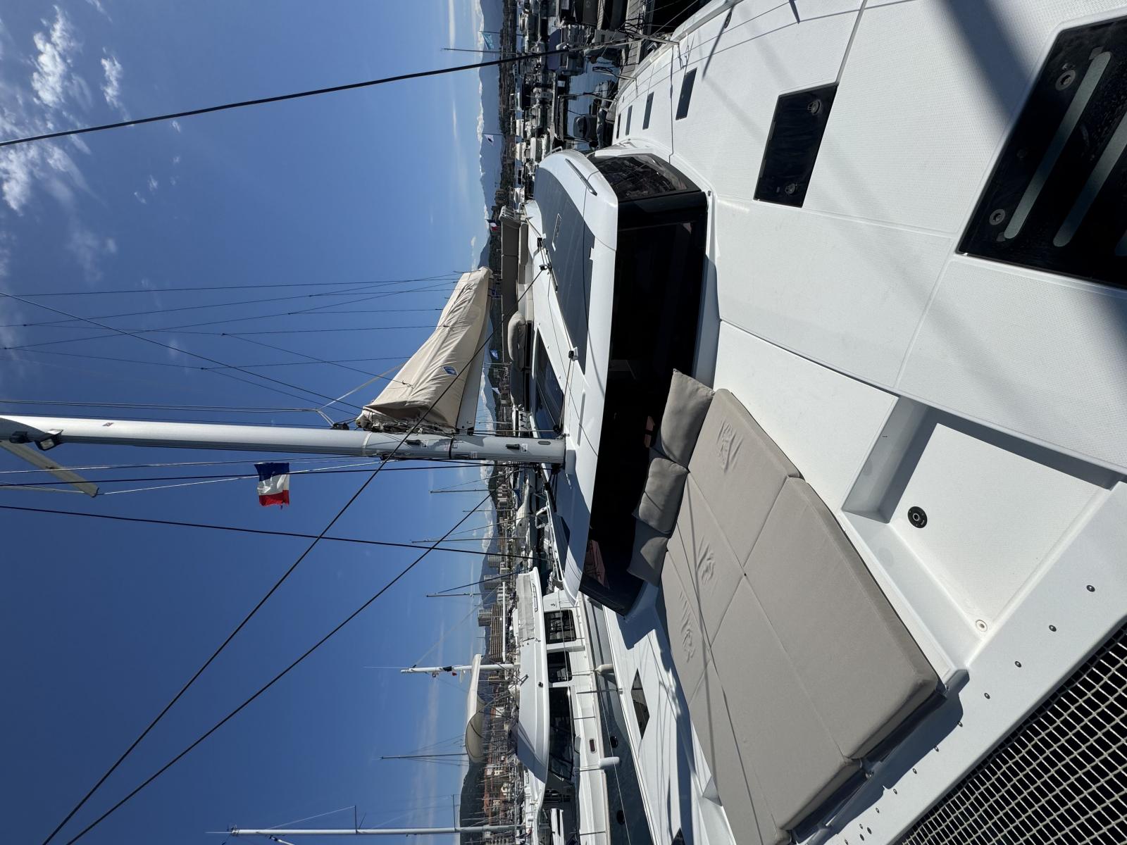 UNI Bateaux, concessionnaire Fontaine-Pajot pour la Corse, vous propose à la vente, un superbe Fountaine Tanna 47 millésime 2024 d'occasion avec seulement 1 saison de location