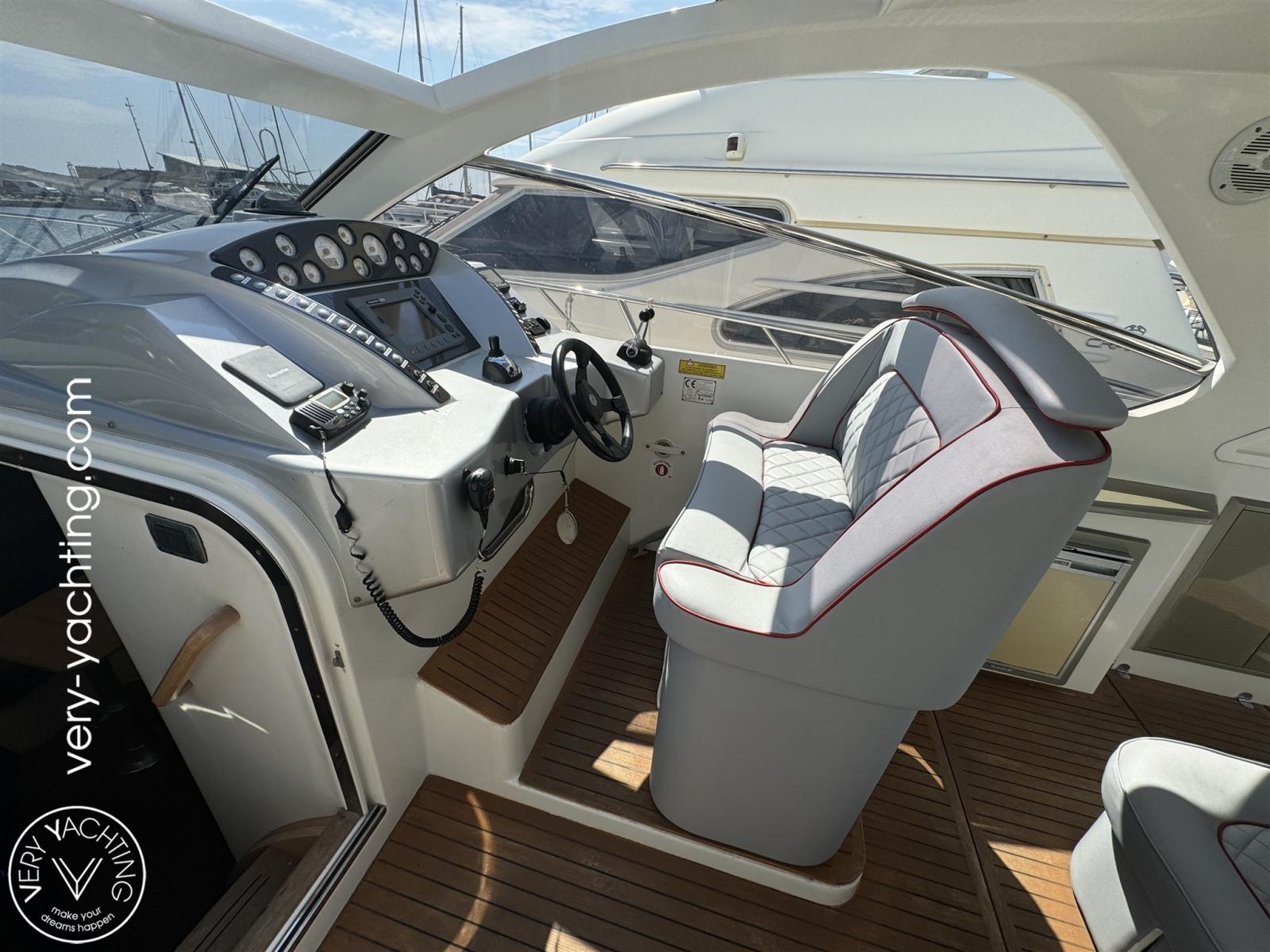 Antenne radar, 2 Commande électrique, GPS (Raymarine C80), Joystick (de manoeuvre Volvo), Pilote automatique (Raymarine), Radar (Raymarine C80), Radio VHF (Raymarine RAY 54E), Sondeur (Raymarine).