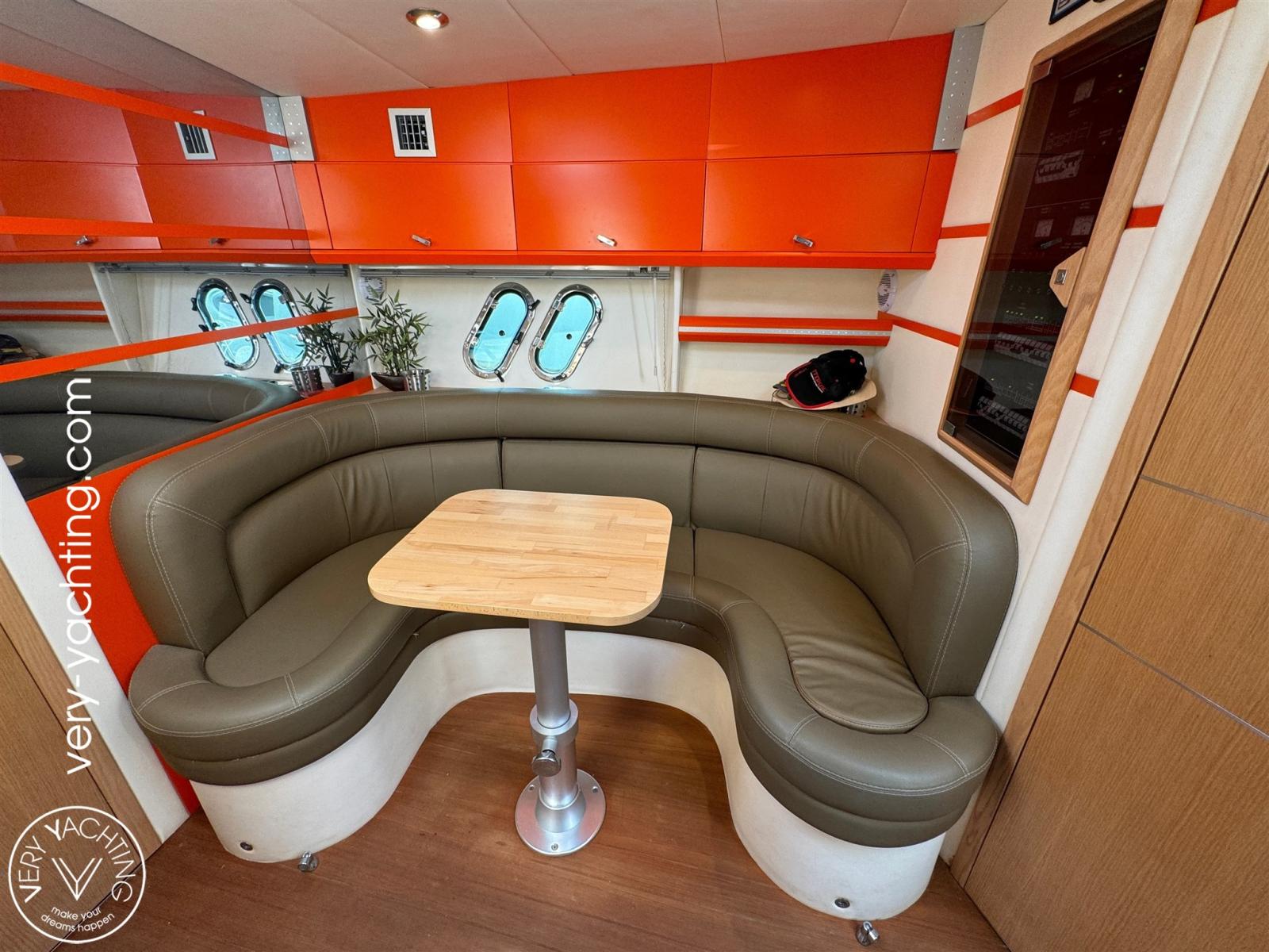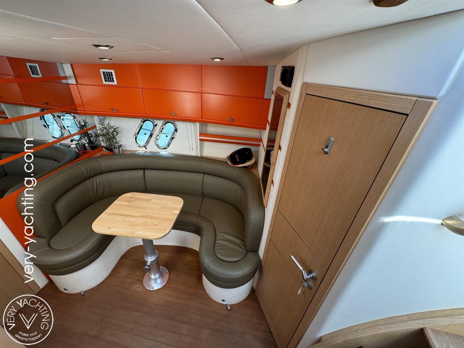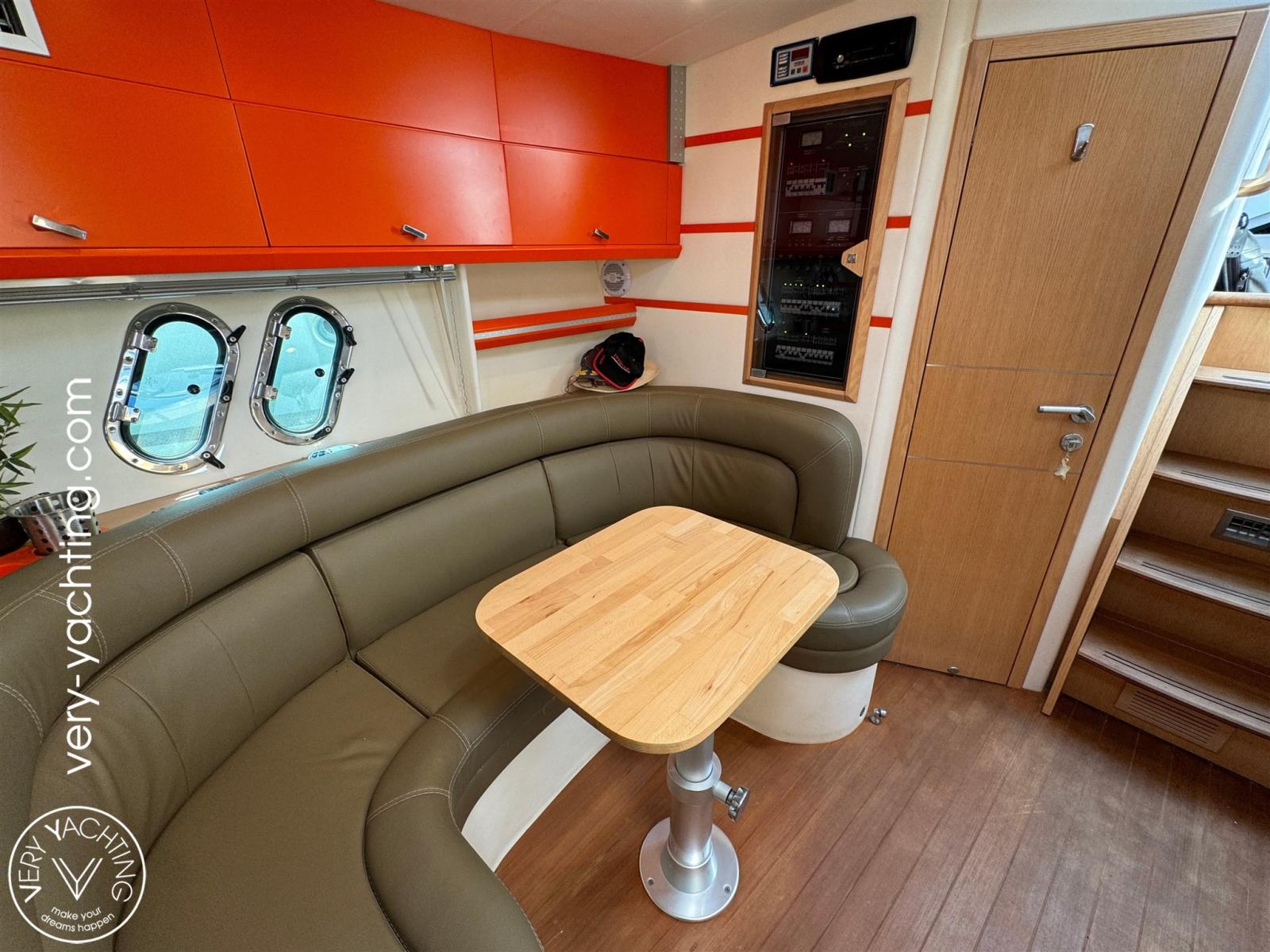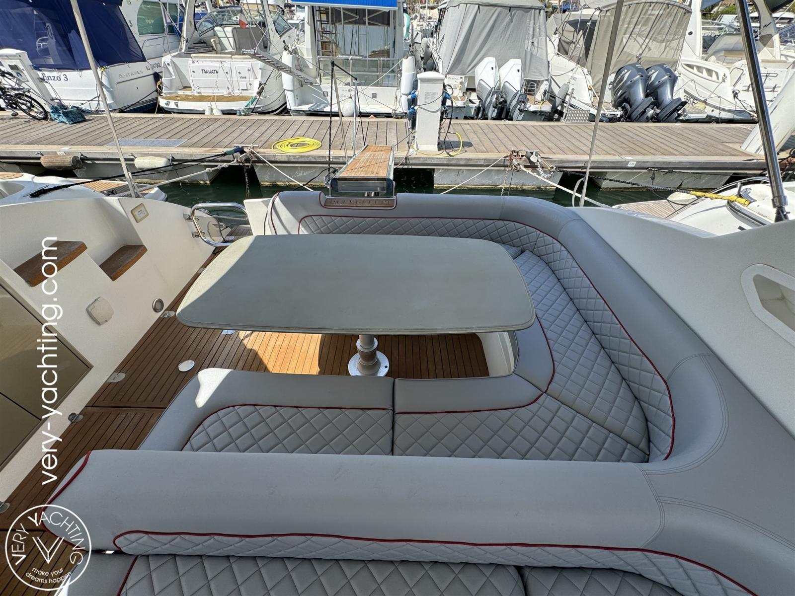 Eau sous pression, Douche de cockpit, Hard top, Extincteur(s) fixe(s), Lavabo dans le cockpit, Passerelle, Plateforme arrière (teck), Pompe de cale automatique, Cockpit en teck, Prise de quai, Onduleur, Guindeau électrique, Echelle de bain, table de cockpit.