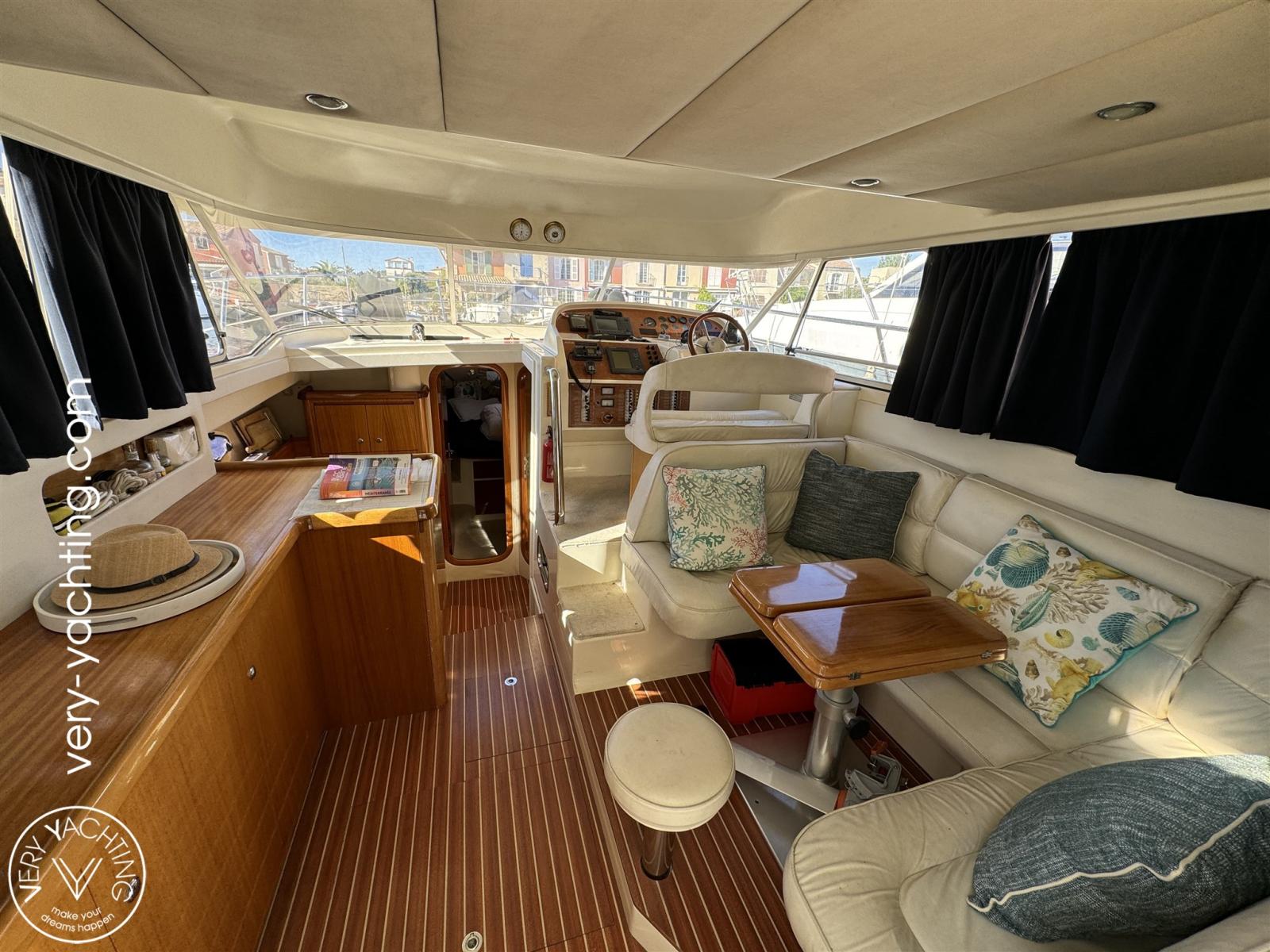 2 cabines, salle d'eau avec douche et wc électrique, carré convertible, cockpit teck, propulseur d'étrave, éclairage leds,..