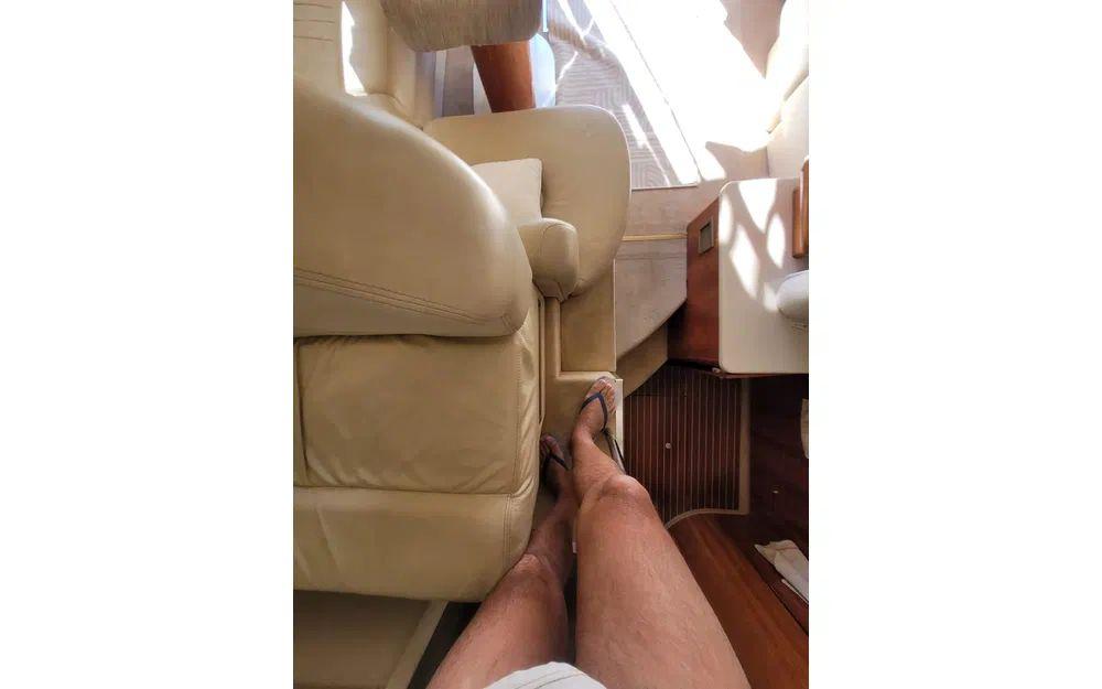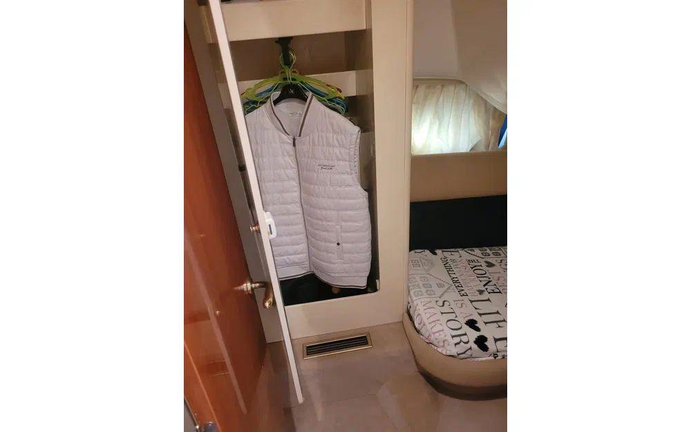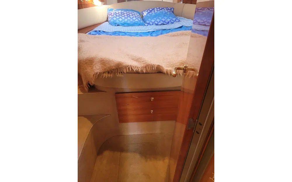 Ce Cranchi a du répondant avec ses 2 moteurs Volvo diesel de 370cv chacun. De quoi filer à bonne allure et profiter, sans se poser de questions, d’un tirant d’eau de 0,90m parfait pour s’approcher des plus beaux mouillages.
