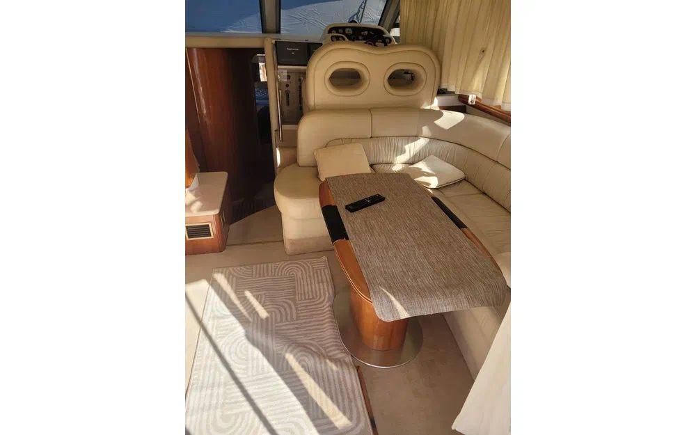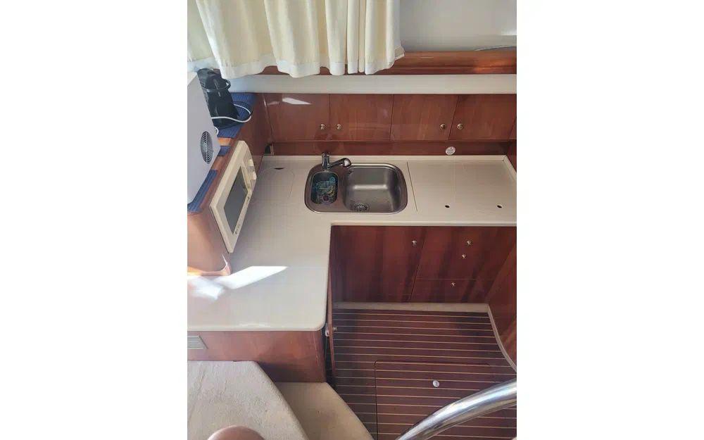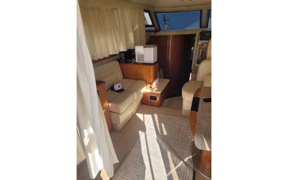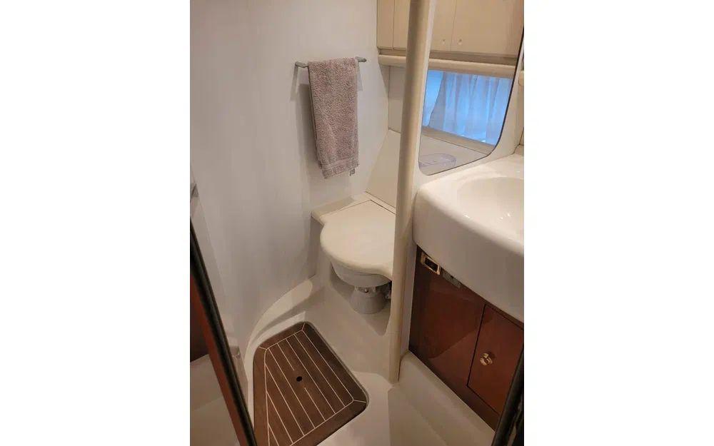 Amateurs de technologie, de cuisine et de détente, préparez-vous à cocher (presque) toutes les cases : réfrigérateur, micro-ondes, cuisinière, machine à café, et même une machine à glace pour les apéros. Profitez du chauffage, de la climatisation, d’un groupe électrogène, GPS, radar, sondeur, VHF, pilote automatique, logiciel de navigation, compas et AIS pour naviguer l’esprit tranquille. Côté confort extérieur : bimini, tauds, passerelle hydraulique, douchette, évier extérieur, flybridge : tout est là pour vos journées farniente ou vos soirées prolongées.