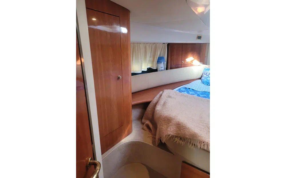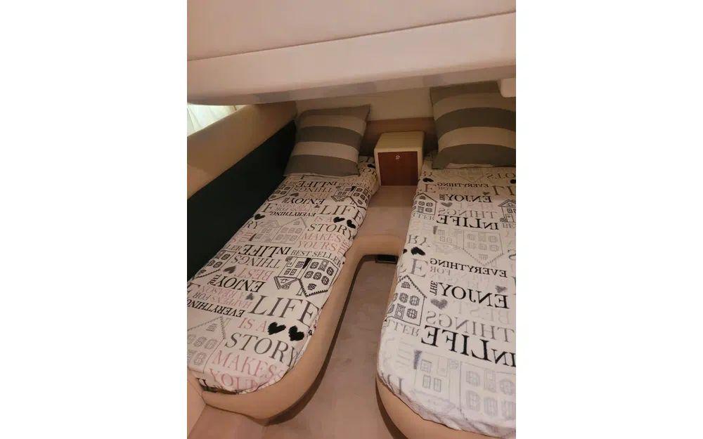 Montez à bord et découvrez un vrai petit appartement flottant : 2 cabines cosy, 4 couchages prêts pour la sieste et 2 salles de bain pour éviter l’embouteillage du matin. Avec une capacité de 8 passagers, tout le monde trouvera sa place sur les larges banquettes, sur le flybridge ou à l’arrière.