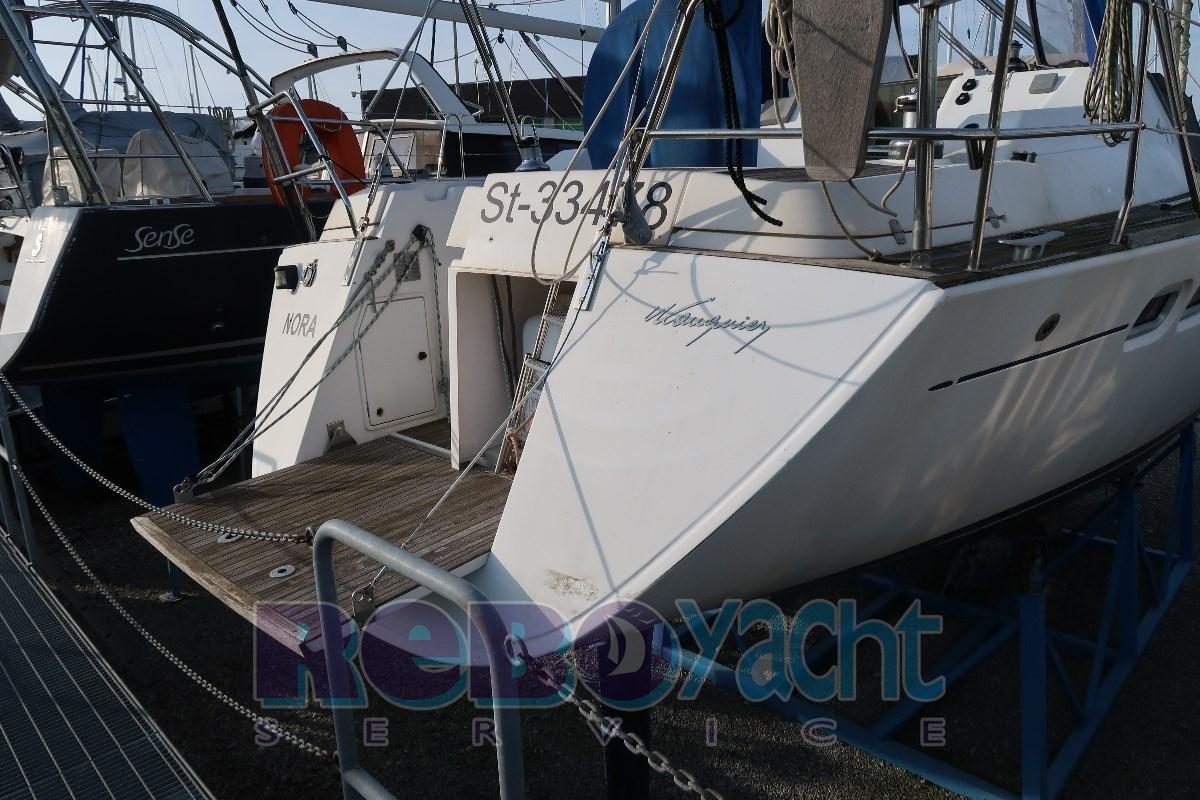 Eau sous pression, Batteries (nuove 2024), Douche de cockpit, Passerelle (manuale), Plateforme arrière (ribaltabile con teak), Cockpit en teck, Prise de quai, Répétiteur électronique (pozzetto), Guindeau électrique, Gréement monotoron, table de cockpit.