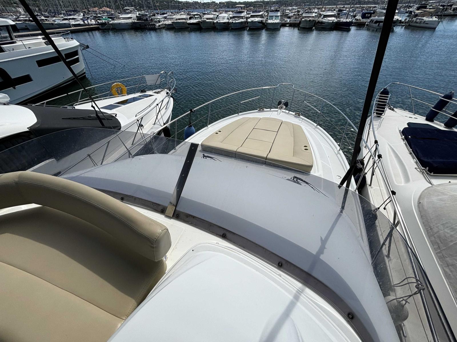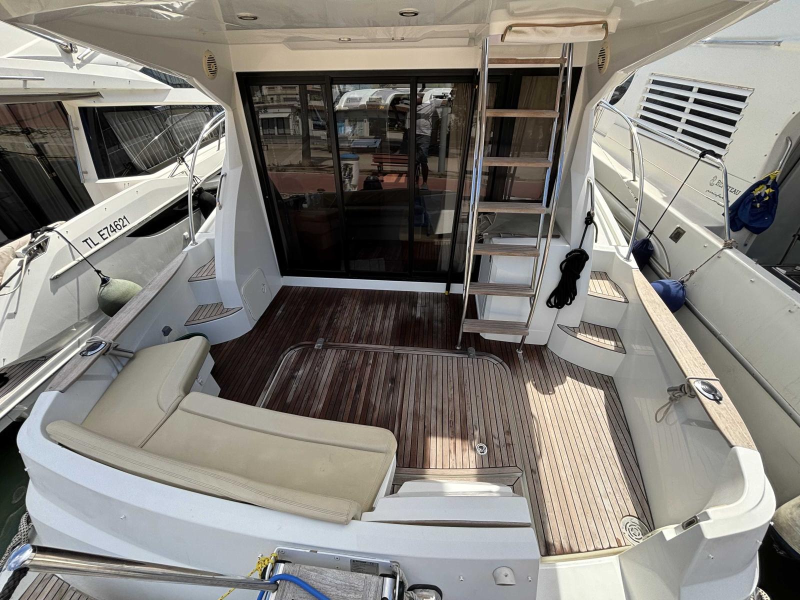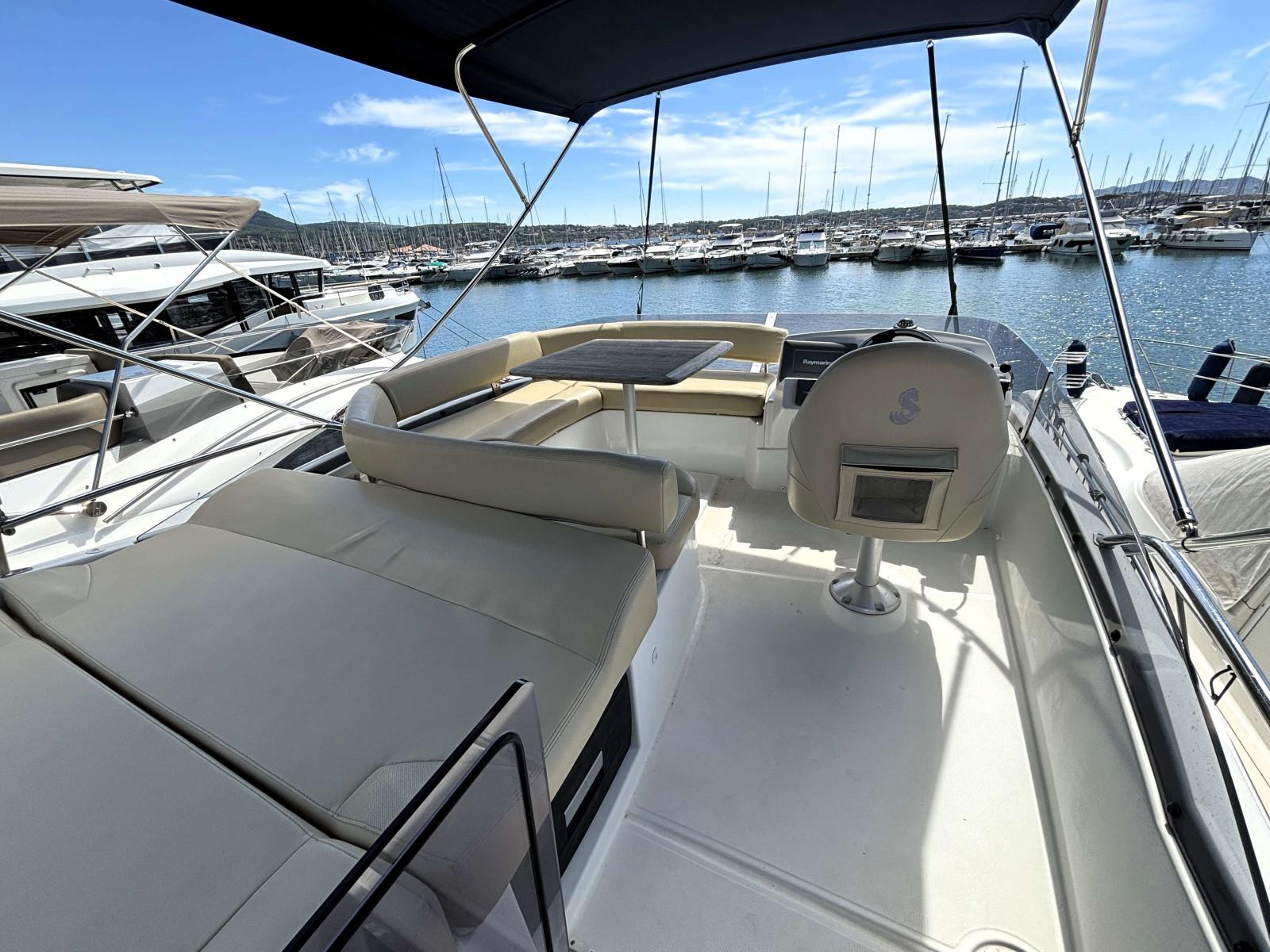 Un très grand fly pour cette catégorie de bateau, avec un coin table repas ainsi qu'un grand bain de soleil.