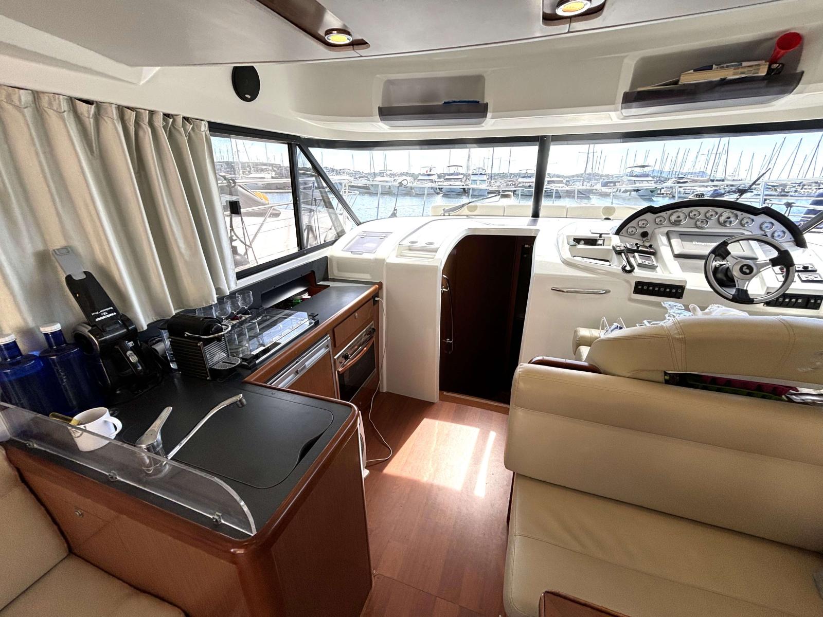 Carré sur tribord, puis suit le poste de pilotage bien dégagé.