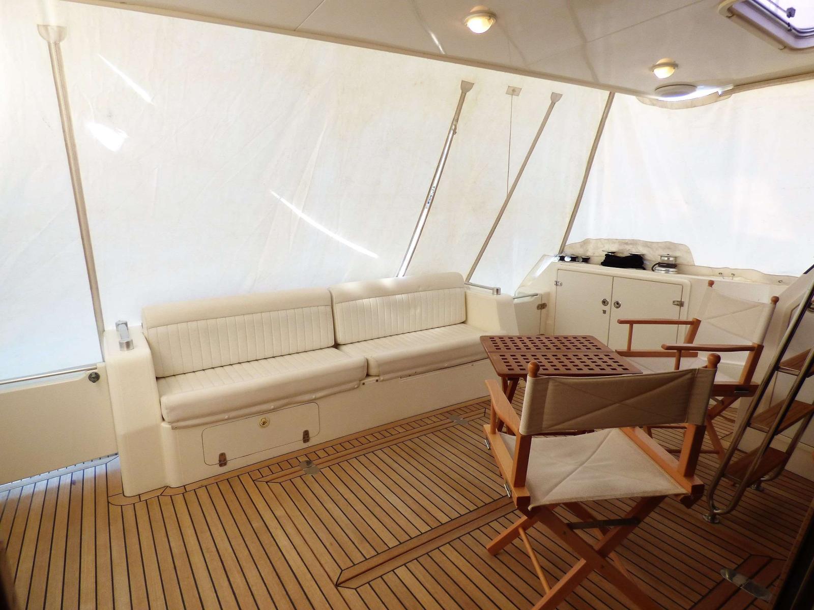 Un beau cockpit, teck neuf de 2021, accès au salon par baie vitrée en inox.
