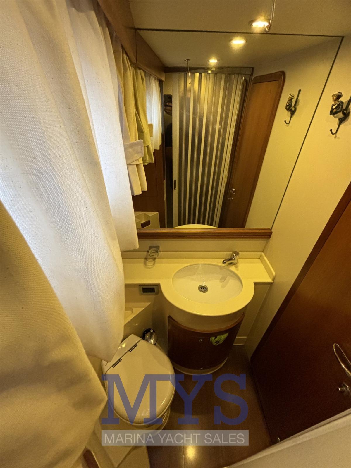 1 cabine double principale à l’avant avec salle de bain complète avec lavabo, douche et WC marins électriques