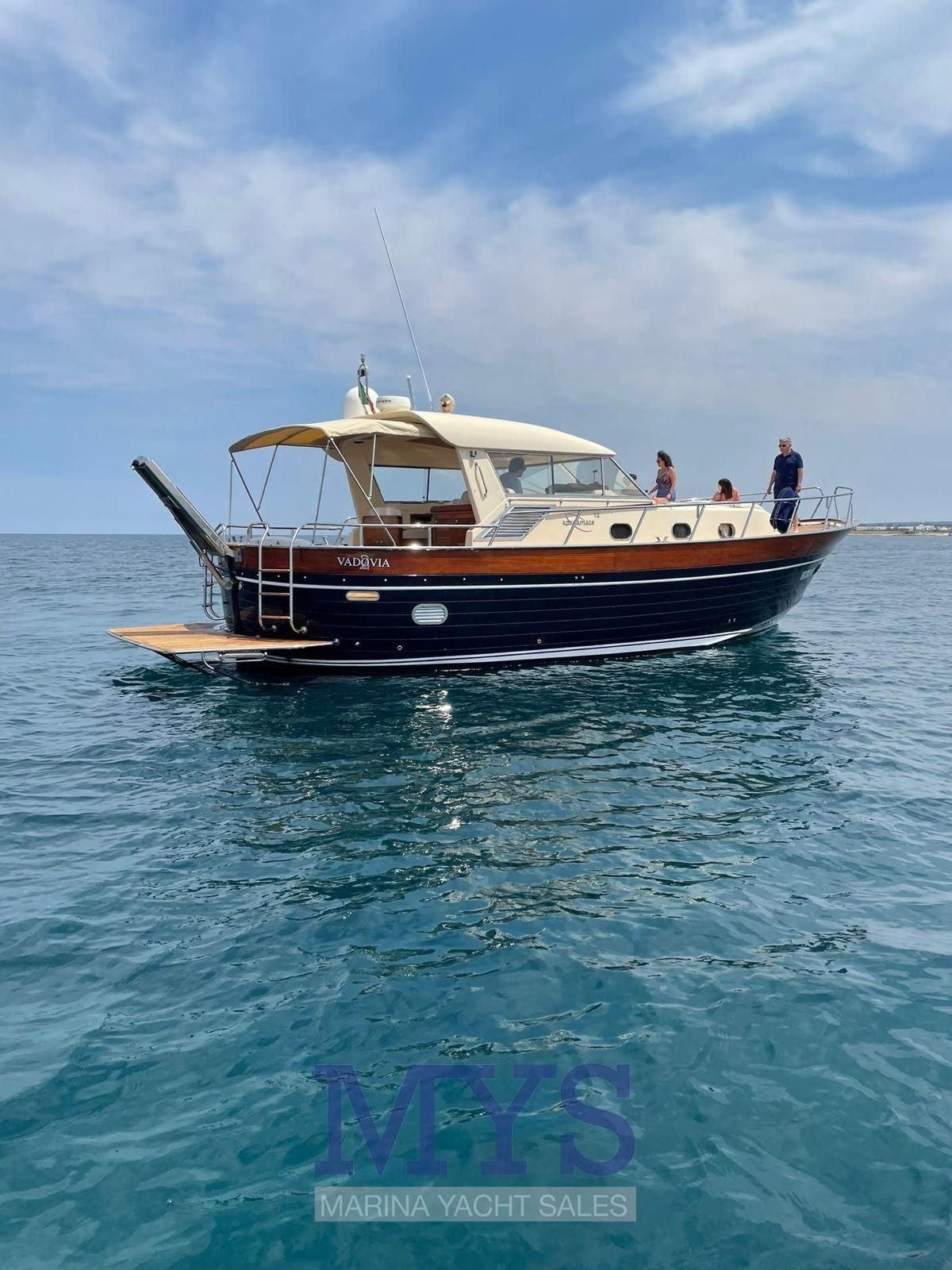 L’APREA MARE EST UN RAFFINEMENT DU MODÈLE ORIGINAL DE LA SORRENTINE GOZZO CARACTÉRISÉE PAR SA POUPE ARRONDIE ET SON BORDAGE EN TECK QUI S’ÉTEND DE LA POUPE À LA PROUE