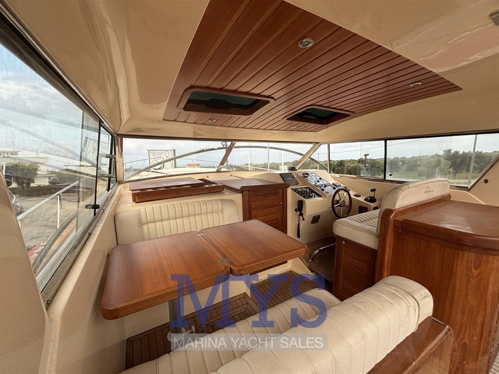 Alarme moteur, Eau sous pression, Couleur spéciale, Douche de cockpit, Phare de poursuite, Flaps hydrauliques, Hard top, Extincteur(s) fixe(s), Indicateurs de flaps, Lavage de chaine, Lavabo dans le cockpit, Éclairage de courtoisie, Passerelle, Plateforme arrière, Pompe de cale automatique, Cockpit en teck, Prise de quai, Onduleur, Guindeau électrique, Echelle de bain, table de cockpit.