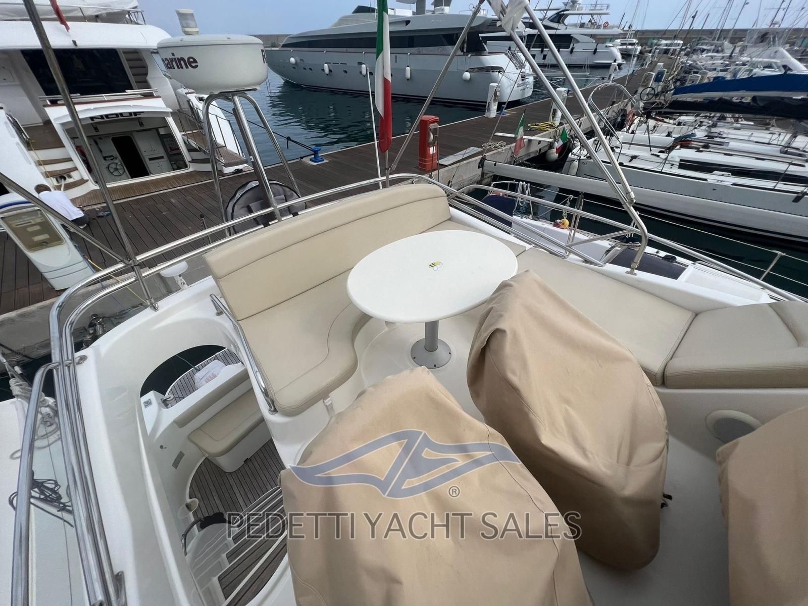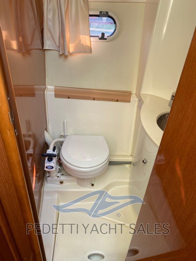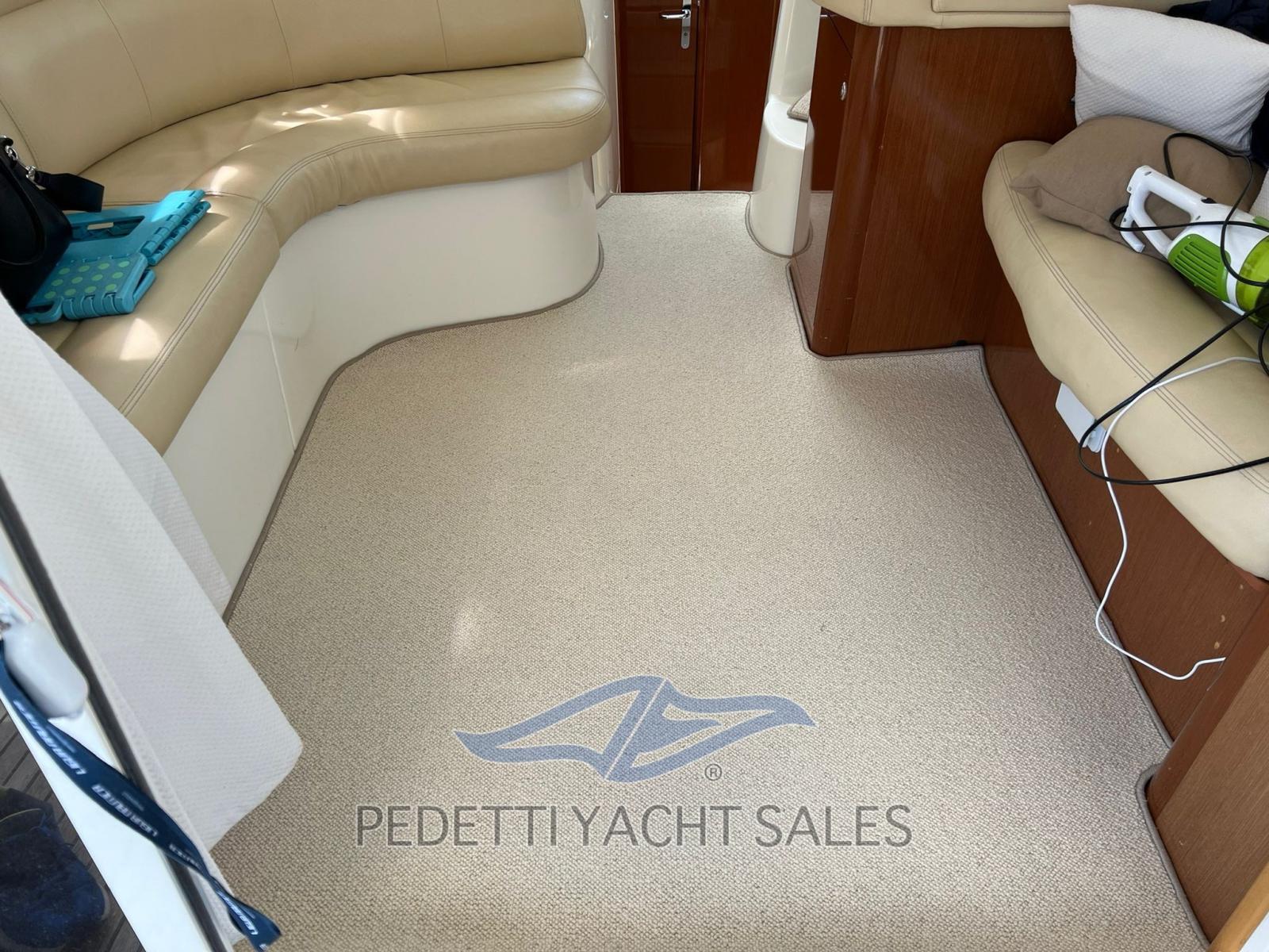 Alarme moteur, Alarme de pompe de cale, Eau sous pression, 5 Batteries, Double barre à roue, Propulseur d'étrave (Max Power), Flaps électriques (Lenco), Éclairage de courtoisie, Passerelle (Besenzoni), 3 Pompe de cale automatique, Cockpit en teck, Prise de quai, Guindeau électrique, Echelle de bain, Table pliante de salon, Corne.