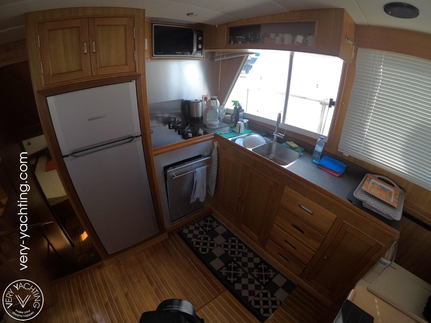 Ce Trawler est confortable et de par sa conception "ne gite pas" ce qui améliore le confort au mouillage.