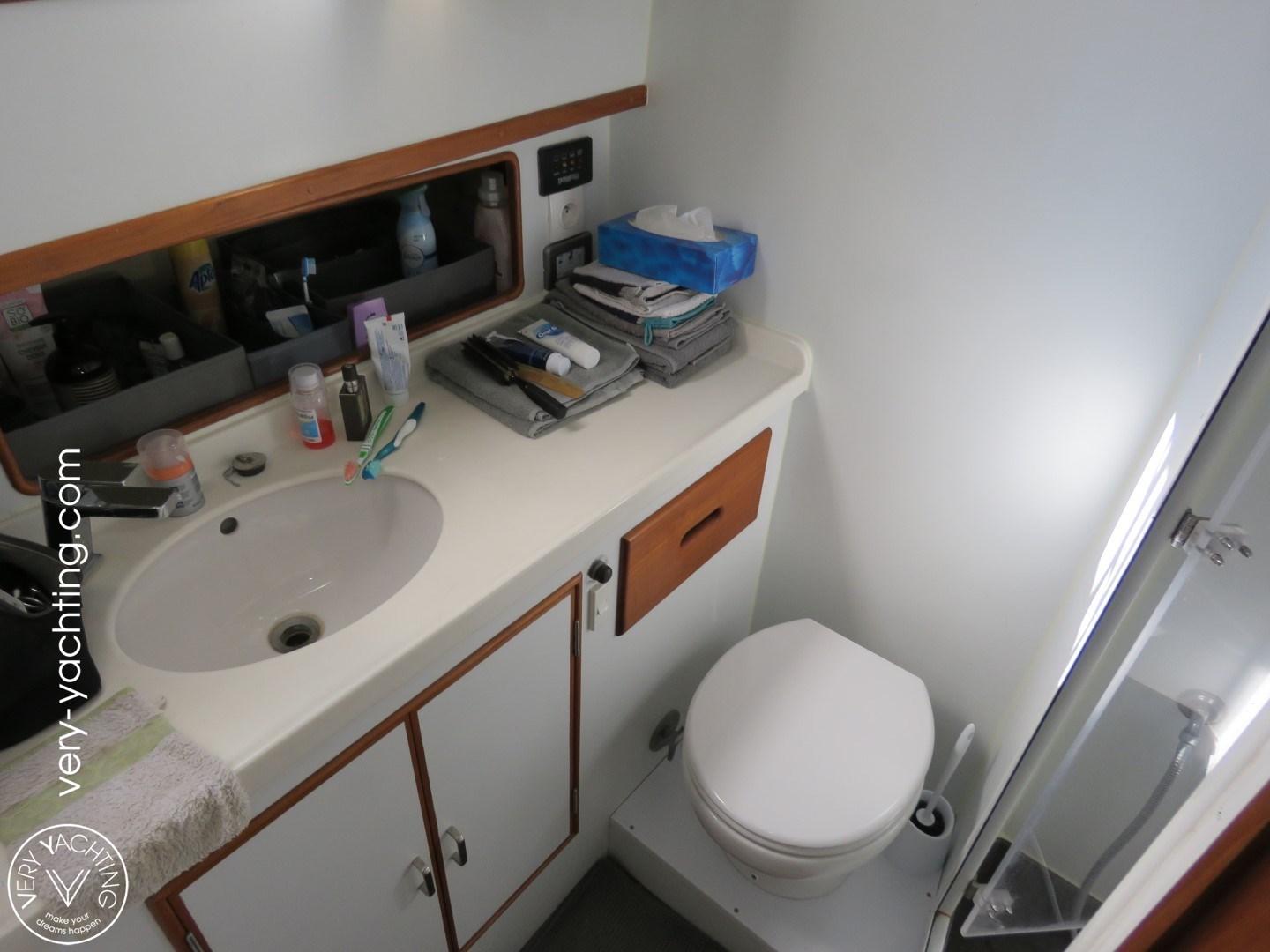 Ballon d'eau chaude (60 l), Dessalinisateur (60l/h), Cuve à eaux noires (100 L), Prises interieures 12v, Prises interieures 220v, Chauffage (d'appoint), Toilettes électriques (Sanibroyeur).