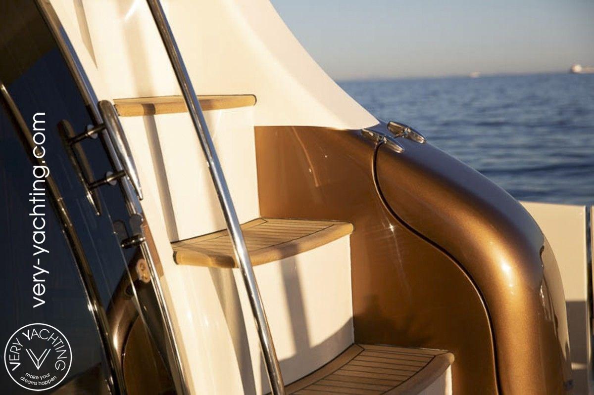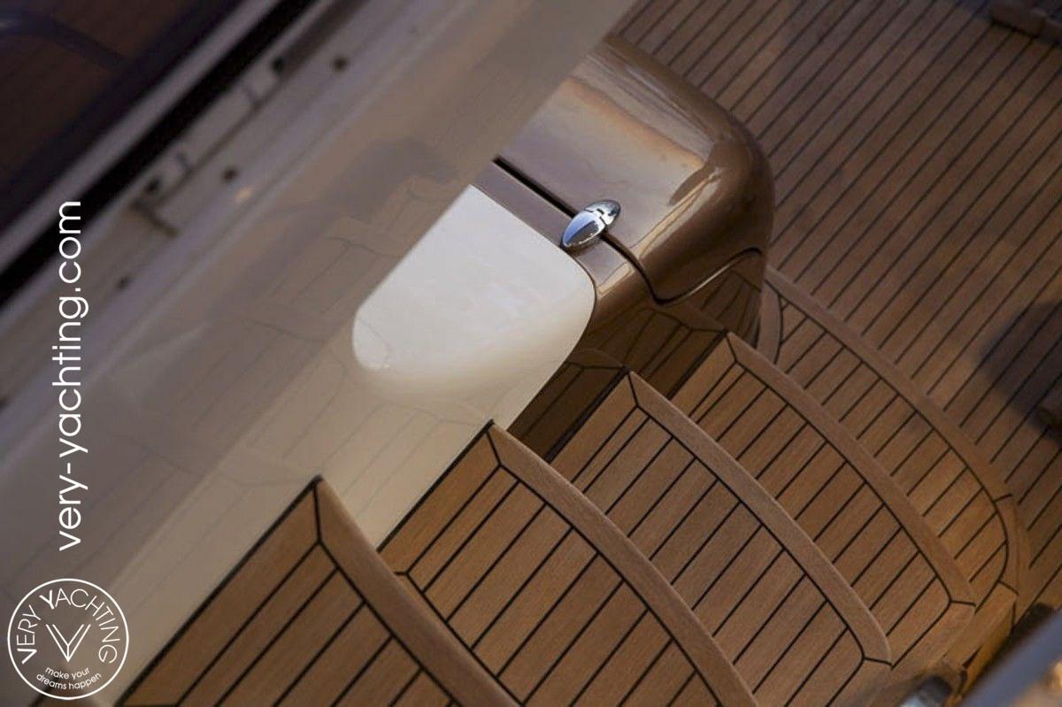 Passavant en teck, Chargeur de batterie (Charger Mastervolt 60A with inverter 2700W), Propulseur de poupe (remote controlled), Propulseur d'étrave (remote controlled), Bossoirs pour annexe (650kg), Cockpit en teck, Stabilisateurs, Annexe (Avon Jet 430), Pont en teck.