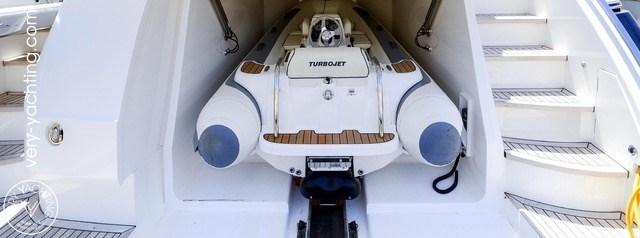 Alarme moteur, Garage à annexe, Spots sous-marins (blue color), Passerelle (hydraulique), Plateforme arrière (hydraulique), Guindeau électrique, Annexe (Williams 386 - 66h).