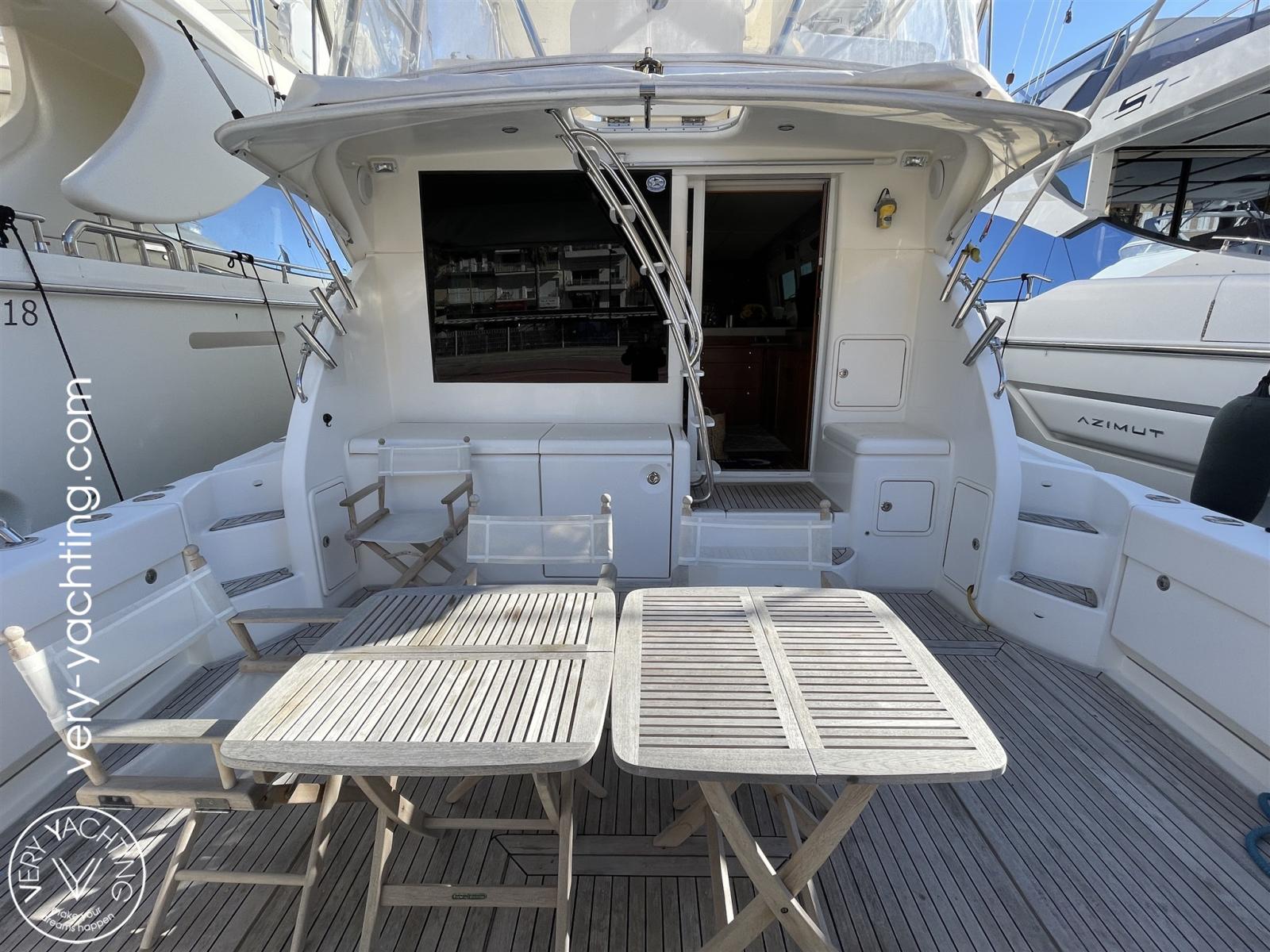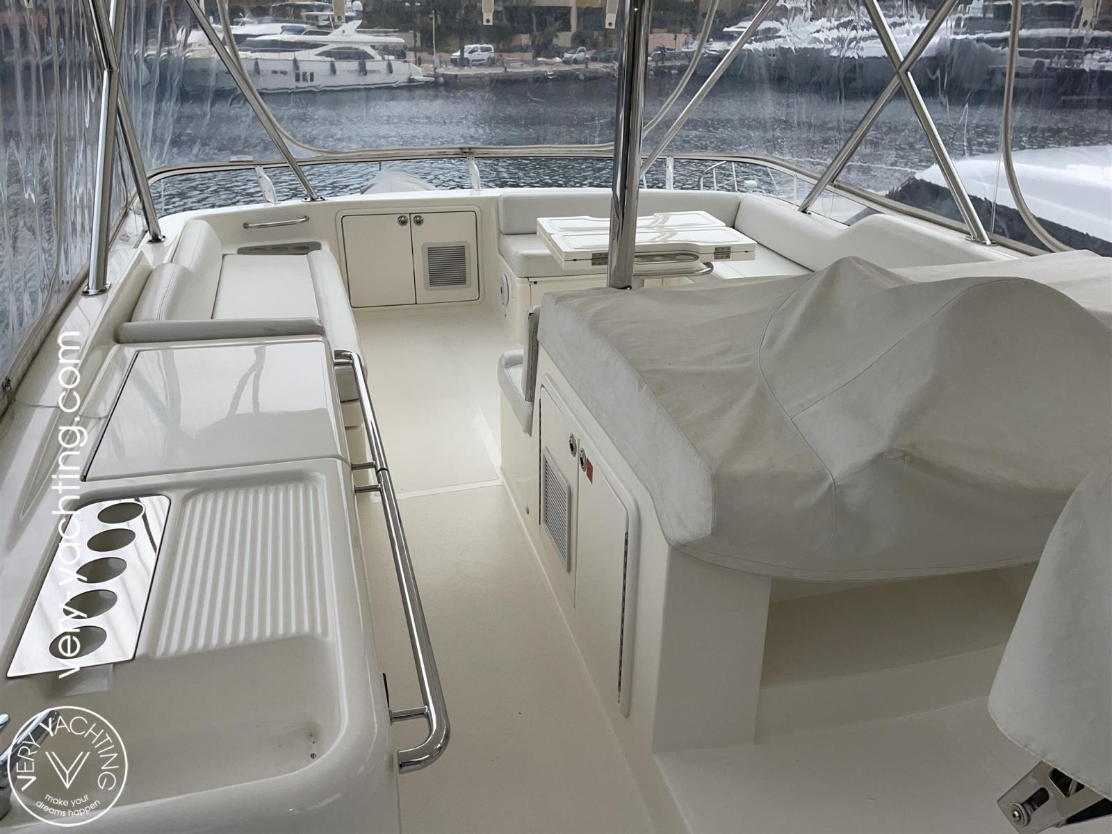 Ancre (50 m chaine), 9 Batteries (4 Service, 4 moteurs, 1 groupe), 3 Chargeur de batterie (dont 1 convertisseur), Douche de cockpit, Grue électrique (hydraulique 3 bras), Hard top, Extincteur(s) fixe(s) (FM 200), Lavabo dans le cockpit, Spots sous-marins (multicolors), 4 Panneau solaire, Passerelle, Plateforme arrière (Hydraulique), Cockpit en teck, Prise de quai, Connexion eau sous pression à quai, Guindeau électrique, table de cockpit.