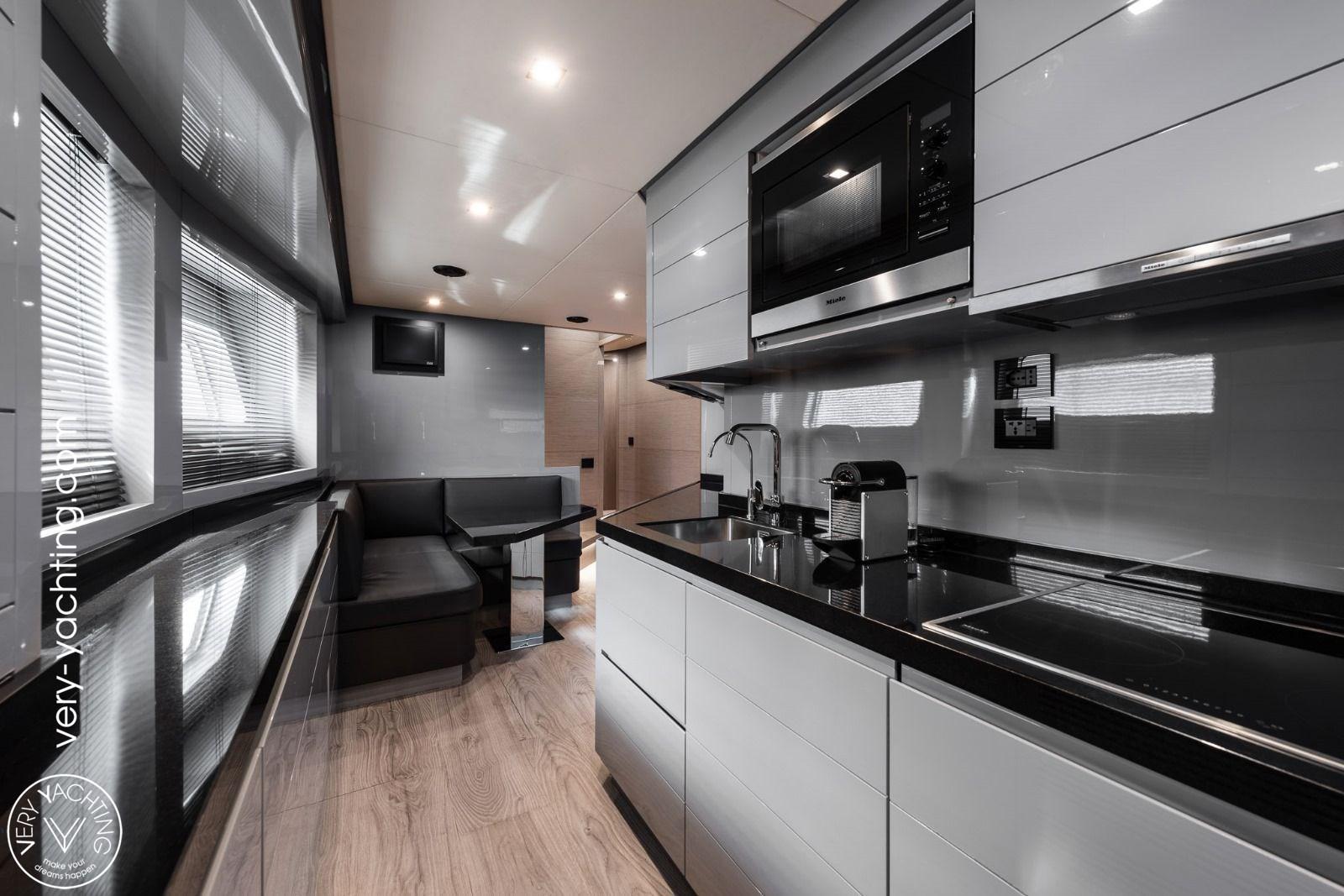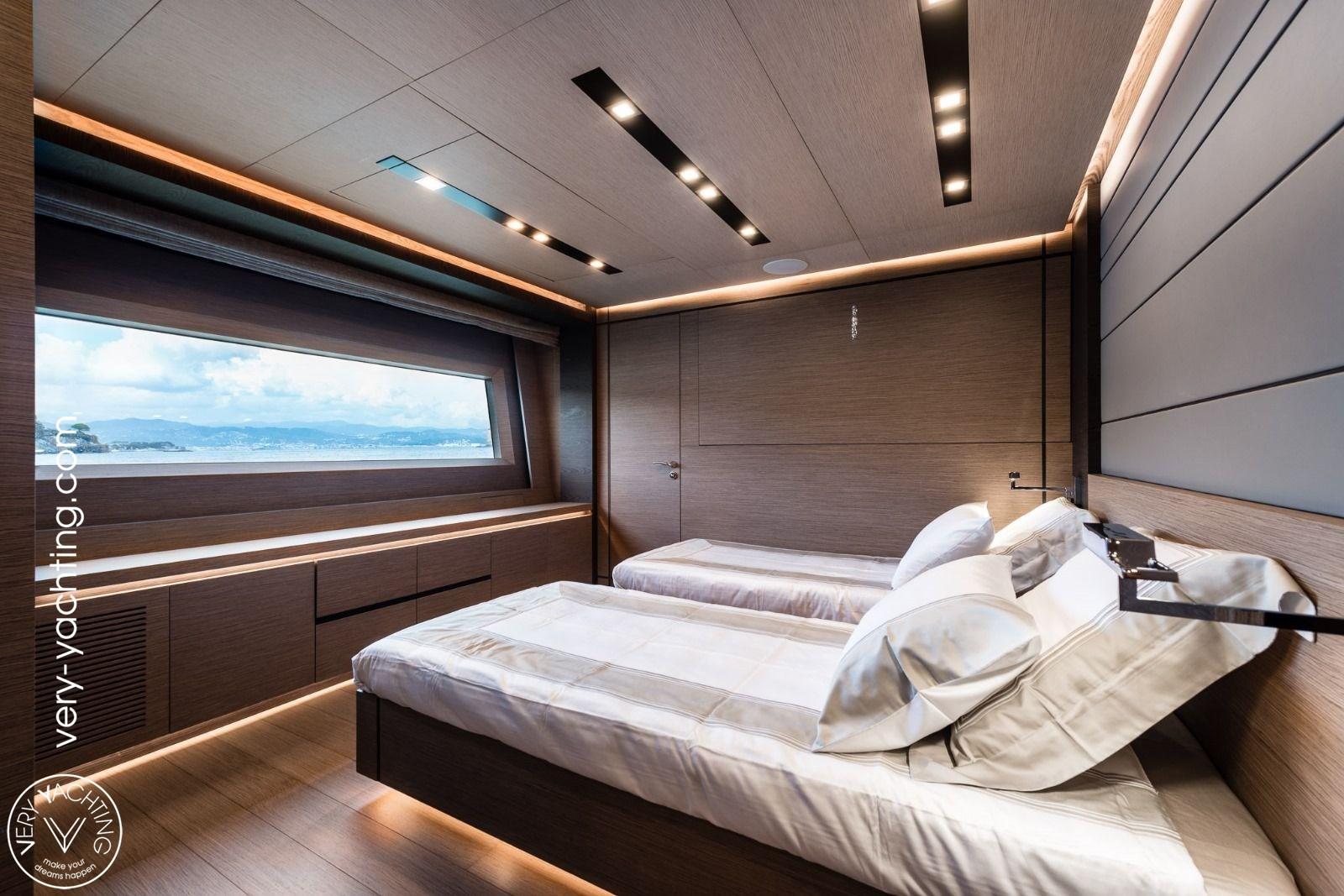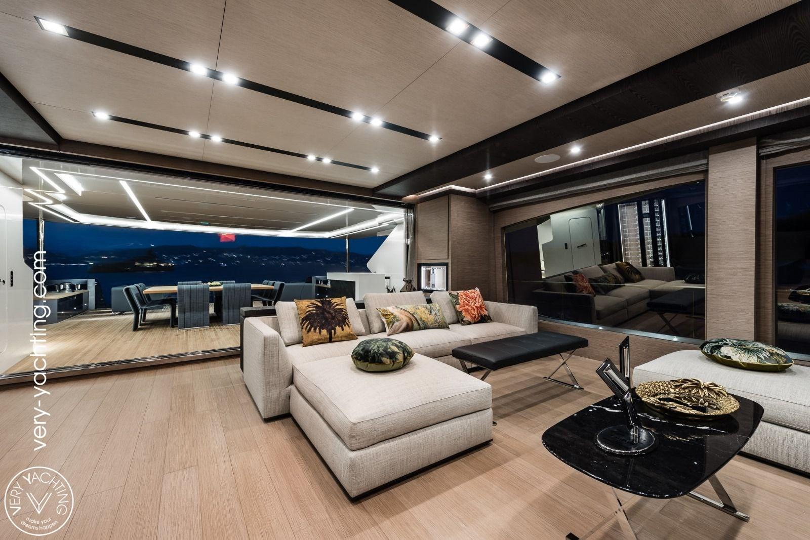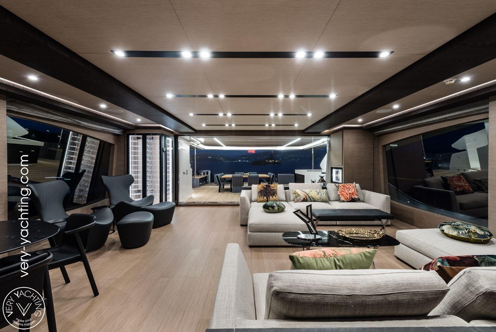 – Two aft garages: one side-type for a large tender (a William 625 can fit in); plus, and aft garage for jet-ski or a smaller
