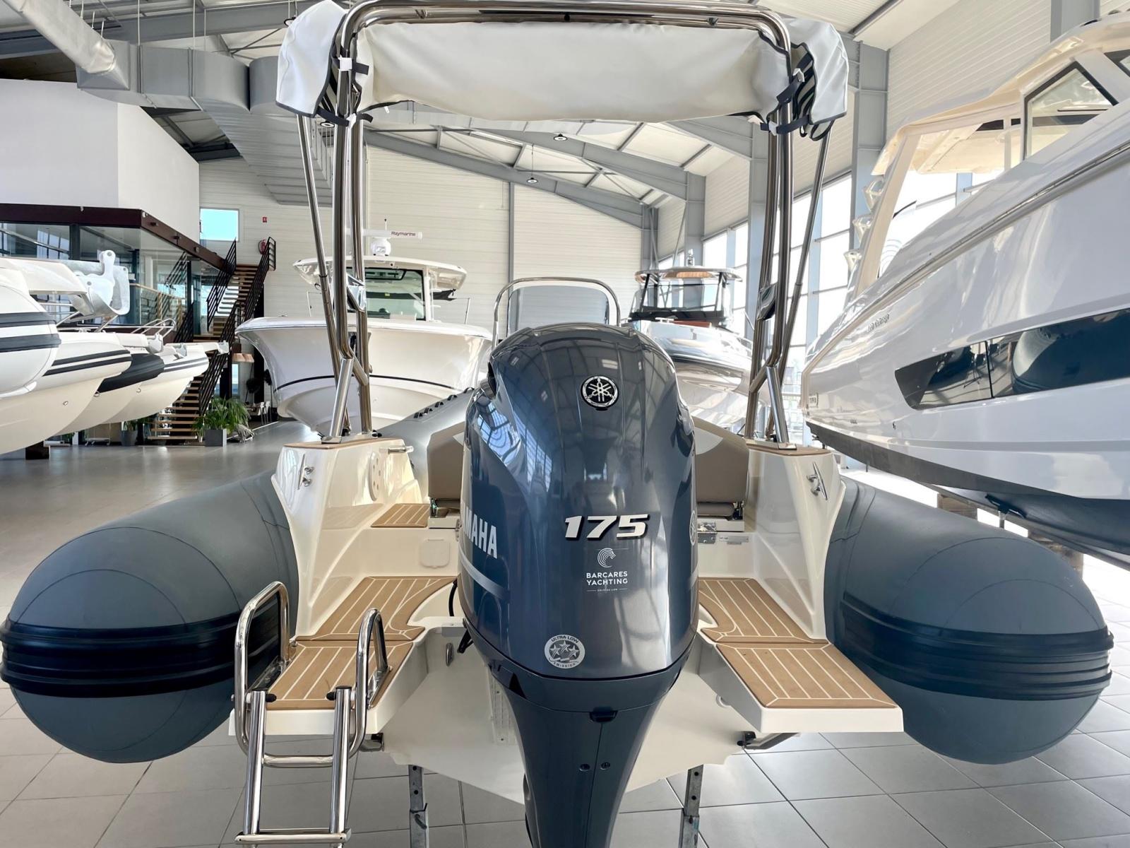 Cette version luxe est équipée d'un roll bar inox, d'une douchette, d'insert teck, d'un GPS/Sondeur GARMIN 6', d'une radio FUSION, de plateformes arrière, etc ..