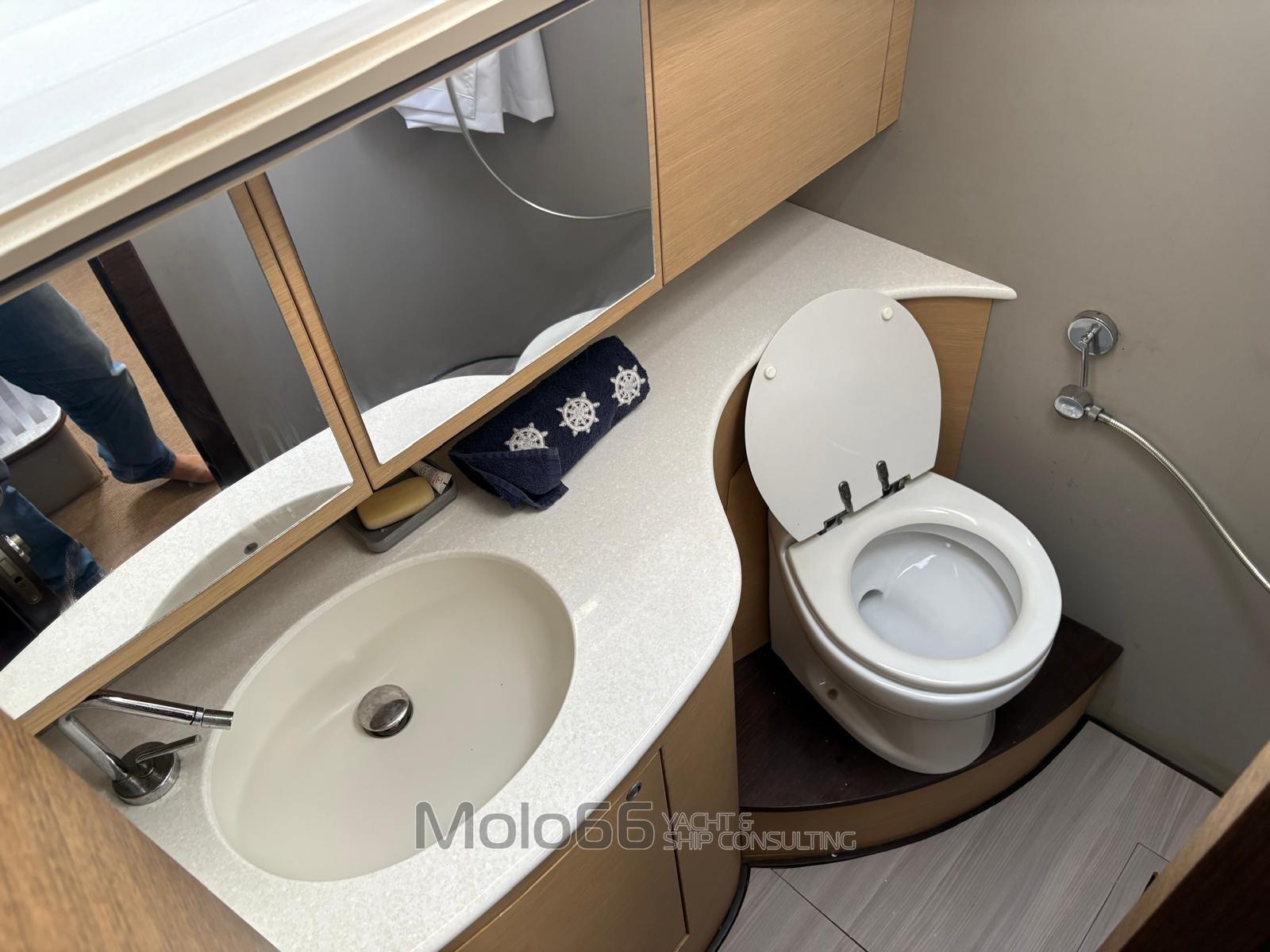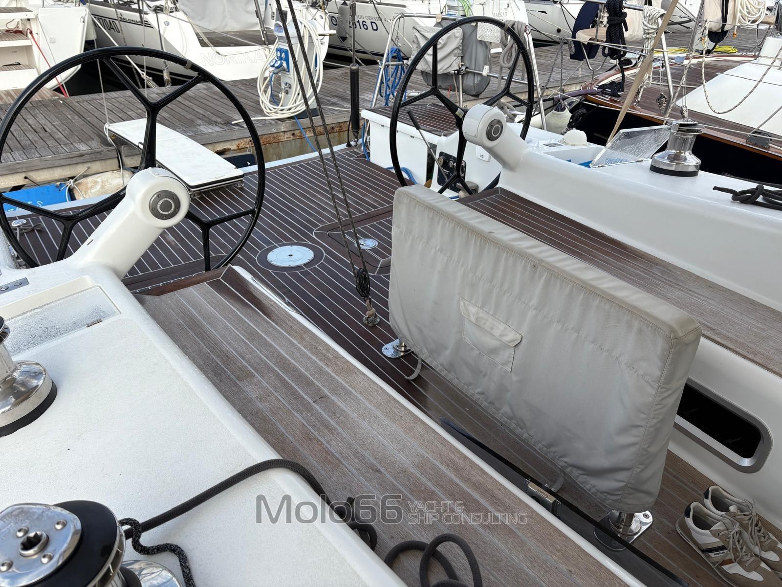 Alarme moteur, Alarme de pompe de cale, Eau sous pression, Passavant en teck, Couleur spéciale, Double barre à roue, Garage à annexe, Extincteur(s) fixe(s), Passerelle, Cockpit en teck, Prise de quai, Guindeau électrique, Gréement Rod, Echelle de coupée, Echelle de bain, table de cockpit, Corne, Winch électrique arrière.