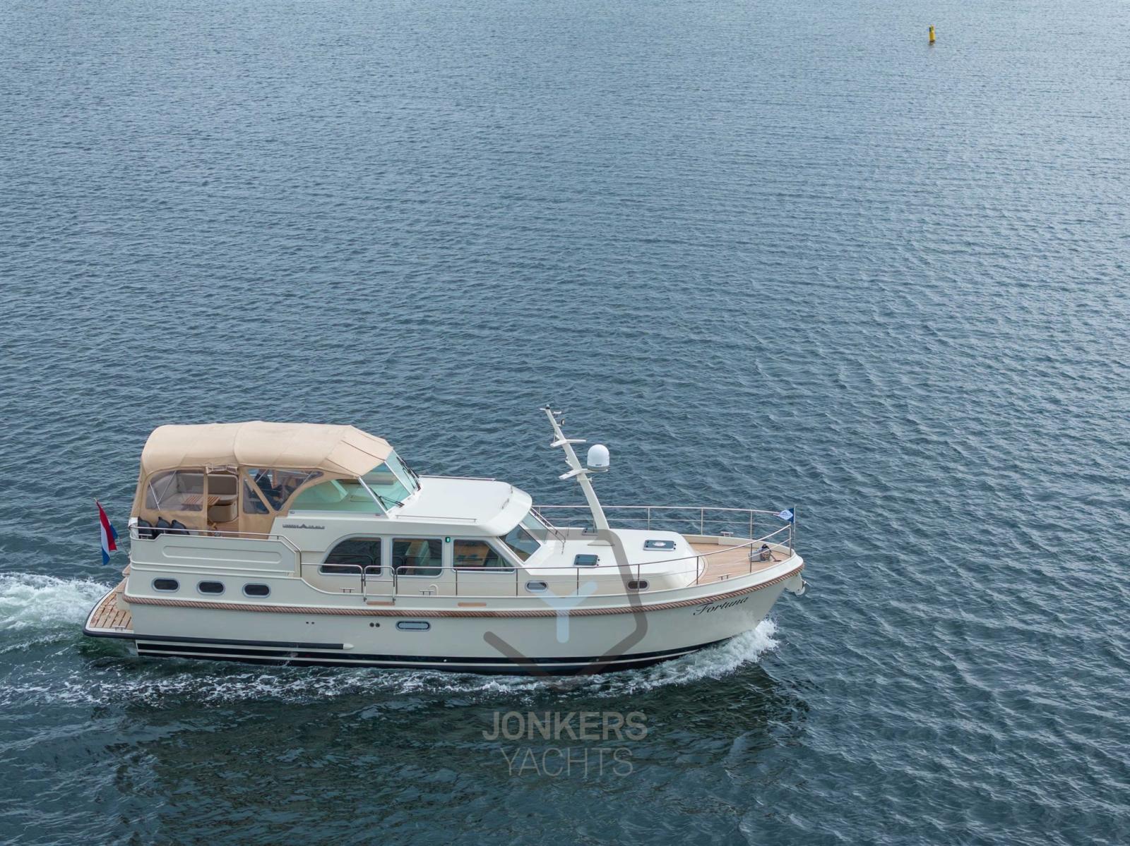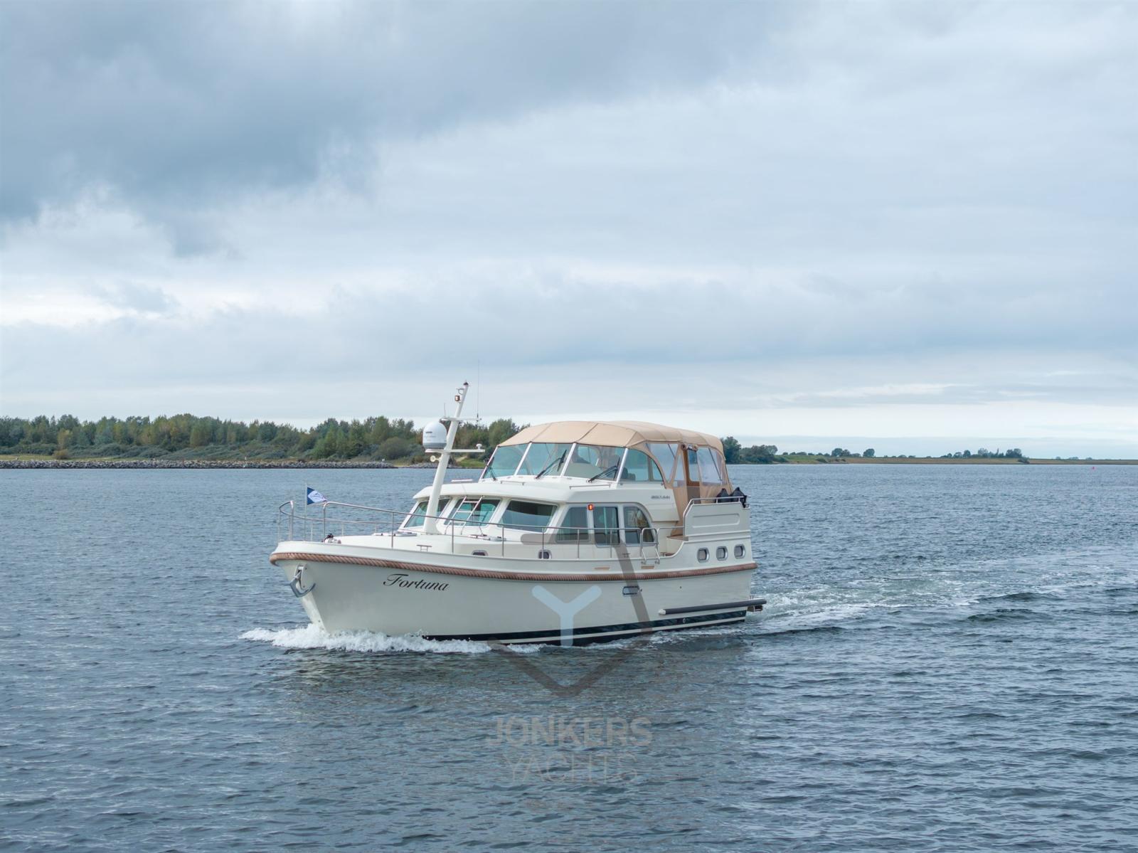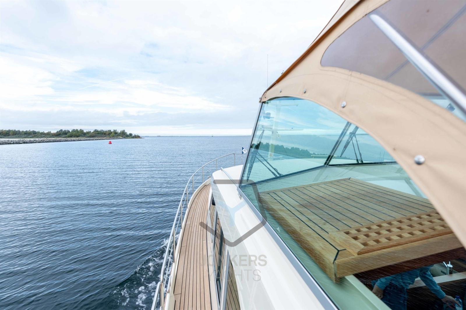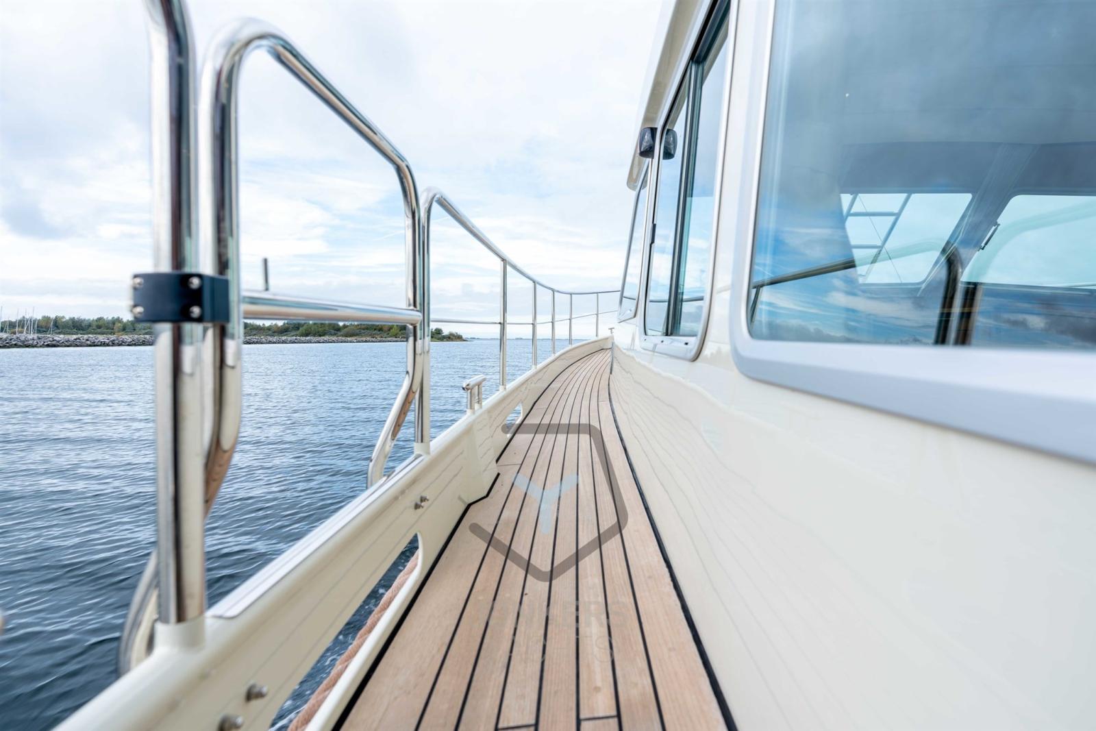 Ce navire dispose de teck sur le pont arrière, plats-bords et pont avant, pilote automatique, traceur de cartes, sorties d’air chaud au poste de pilotage extérieur, tiroir réfrigérateur en supplément dans le salon, éclairage indirect, etc.