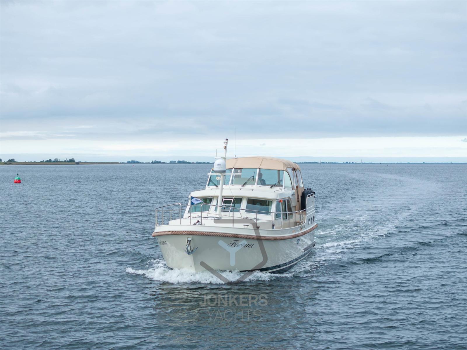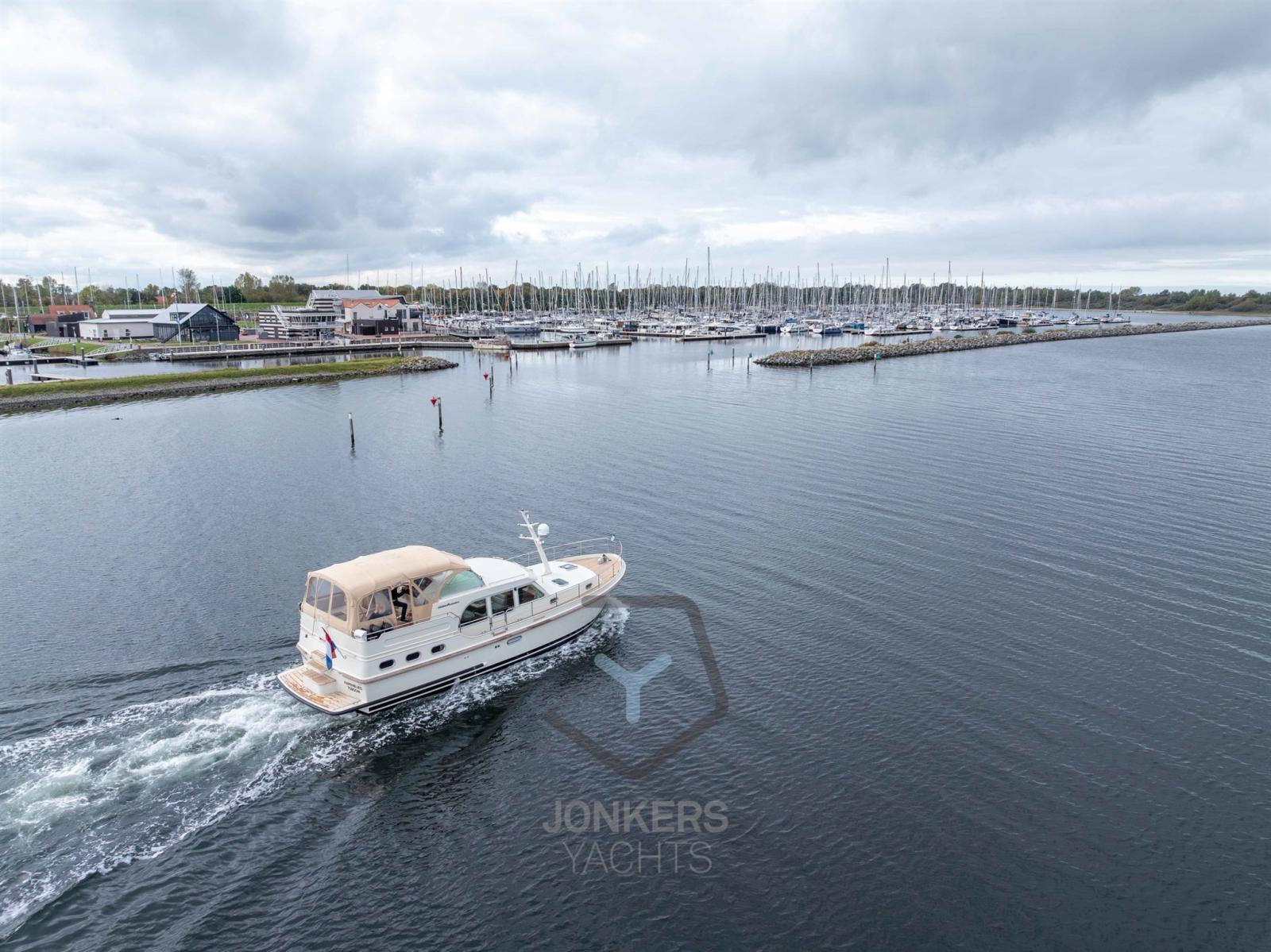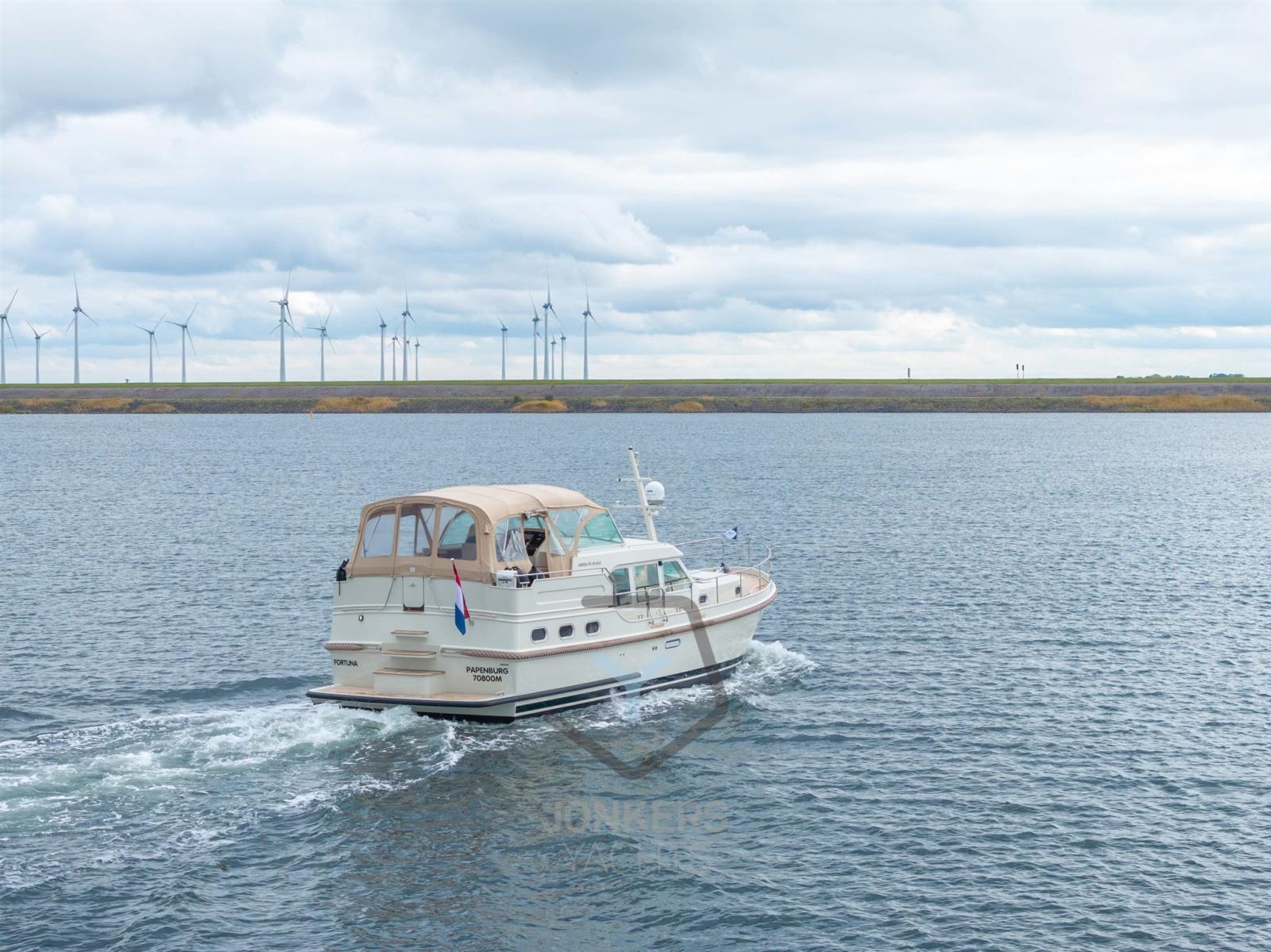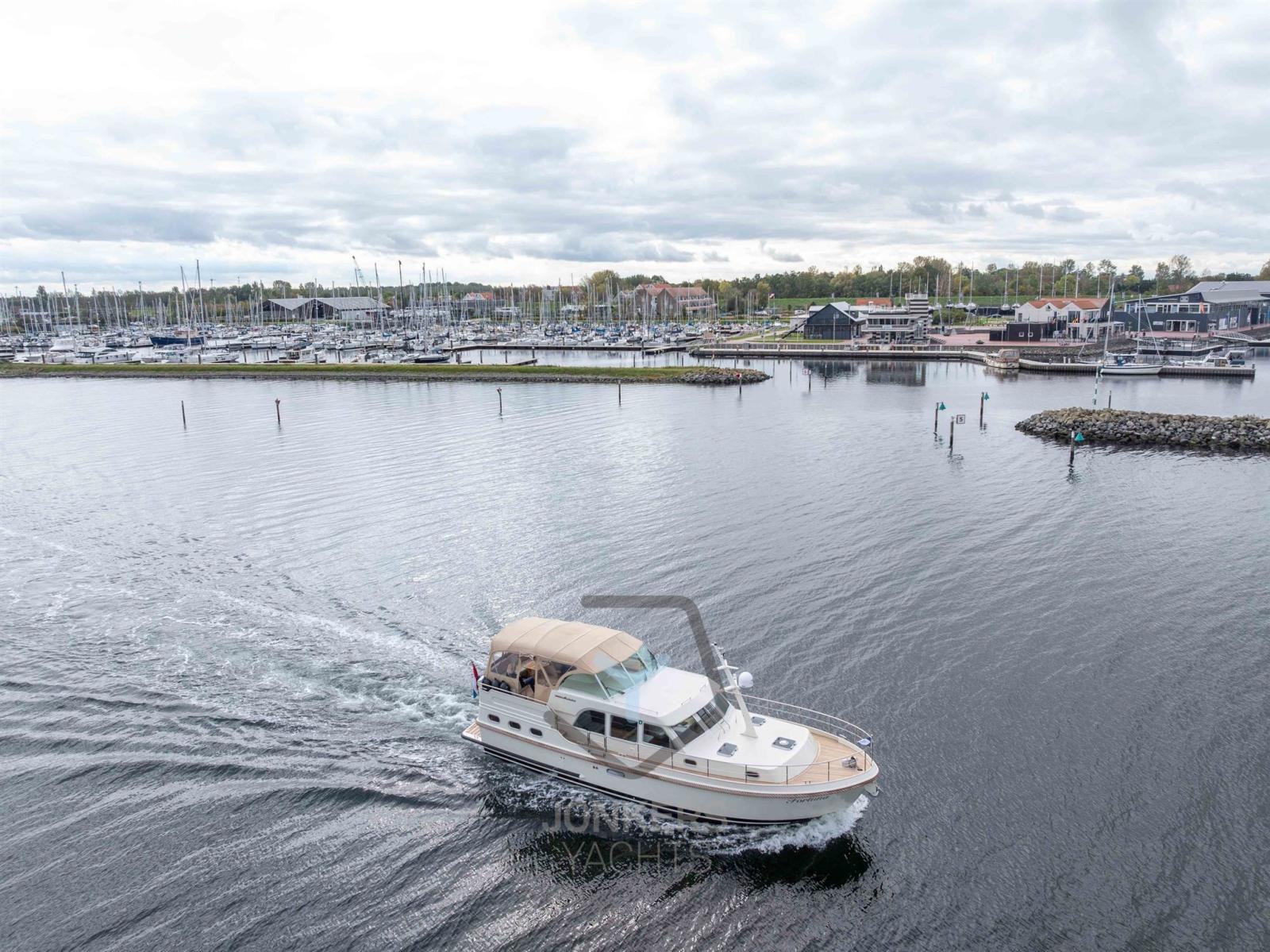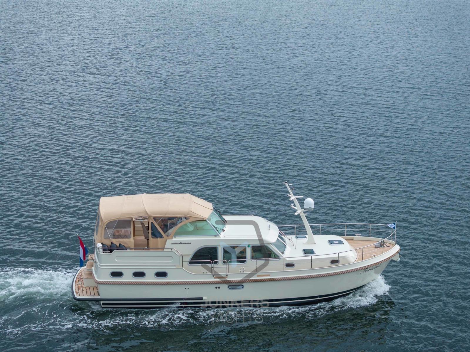 Ce navire dispose de teck sur le pont arrière, plats-bords et pont avant, pilote automatique, traceur de cartes, sorties d’air chaud au poste de pilotage extérieur, tiroir réfrigérateur en supplément dans le salon, éclairage indirect, etc.